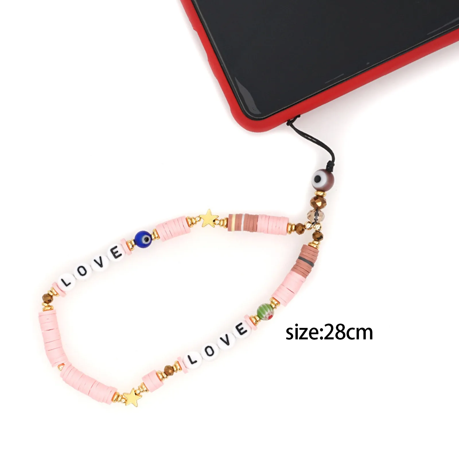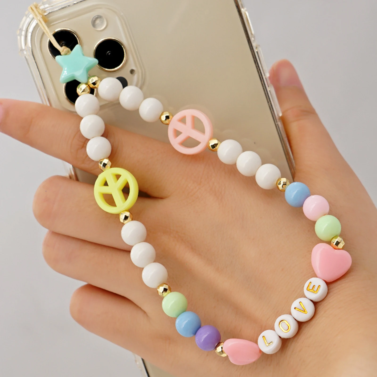 Акриловая цепочка для телефона с разноцветными бусинами и надписями...