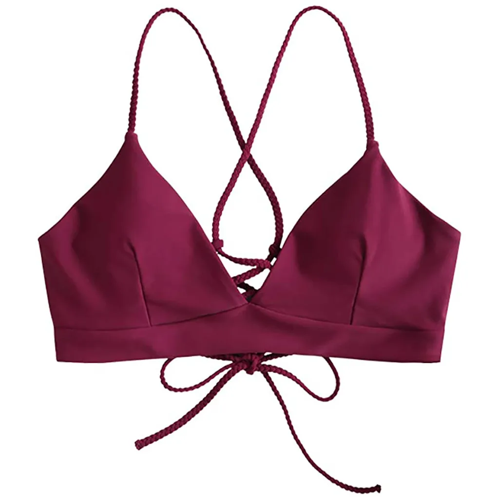 Сексуальный женский купальник пуш-ап, бандажный бикини, Женские однотонные топы, мягкий бюстгальтер, пляжная одежда, 2021