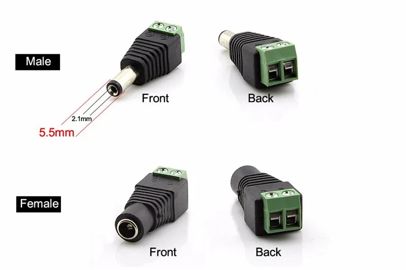 5 шт., 10 шт., 100 шт., мужской, женский, DC удлинитель, разъем 2,1*5,5 мм, разъем питания, адаптер, подключение для светодиодной ленты CCTV камеры