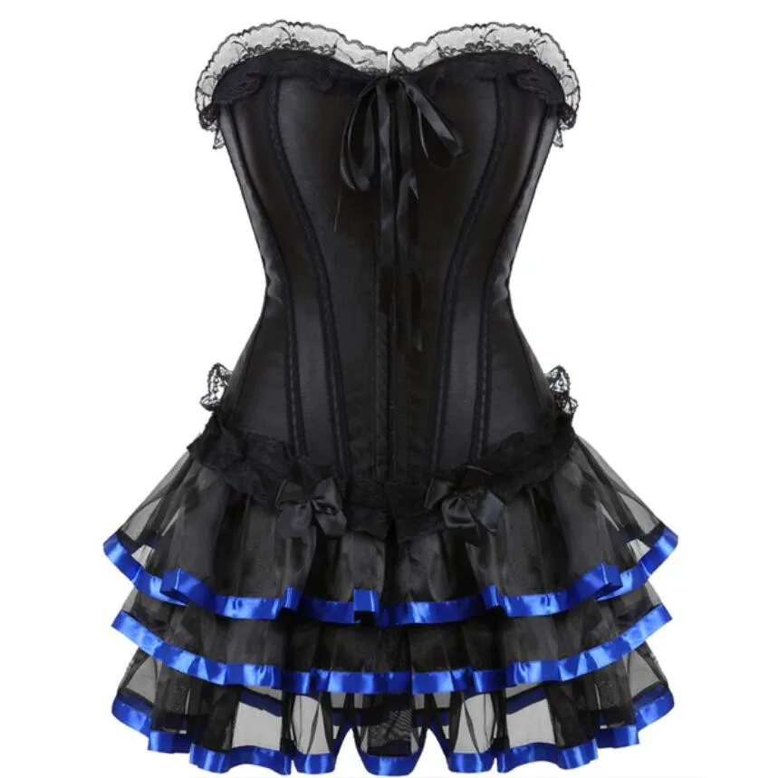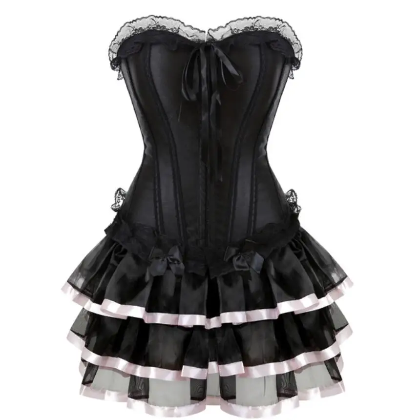 Готический корсет, юбка для женщин, корсет, винтажная кружевная отделка, платье-бюстье, атласная ткань, костюмы для Хэллоуина, вечеринки, клуба, ночного клуба