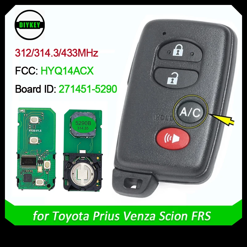 DIYKEY 271451-5290 FCC: HYQ14ACX FSK 312314.3 МГц433 МГц смарт-ключ дистанционного управления для Toyota Prius Venza Scion FRS 2009-2014