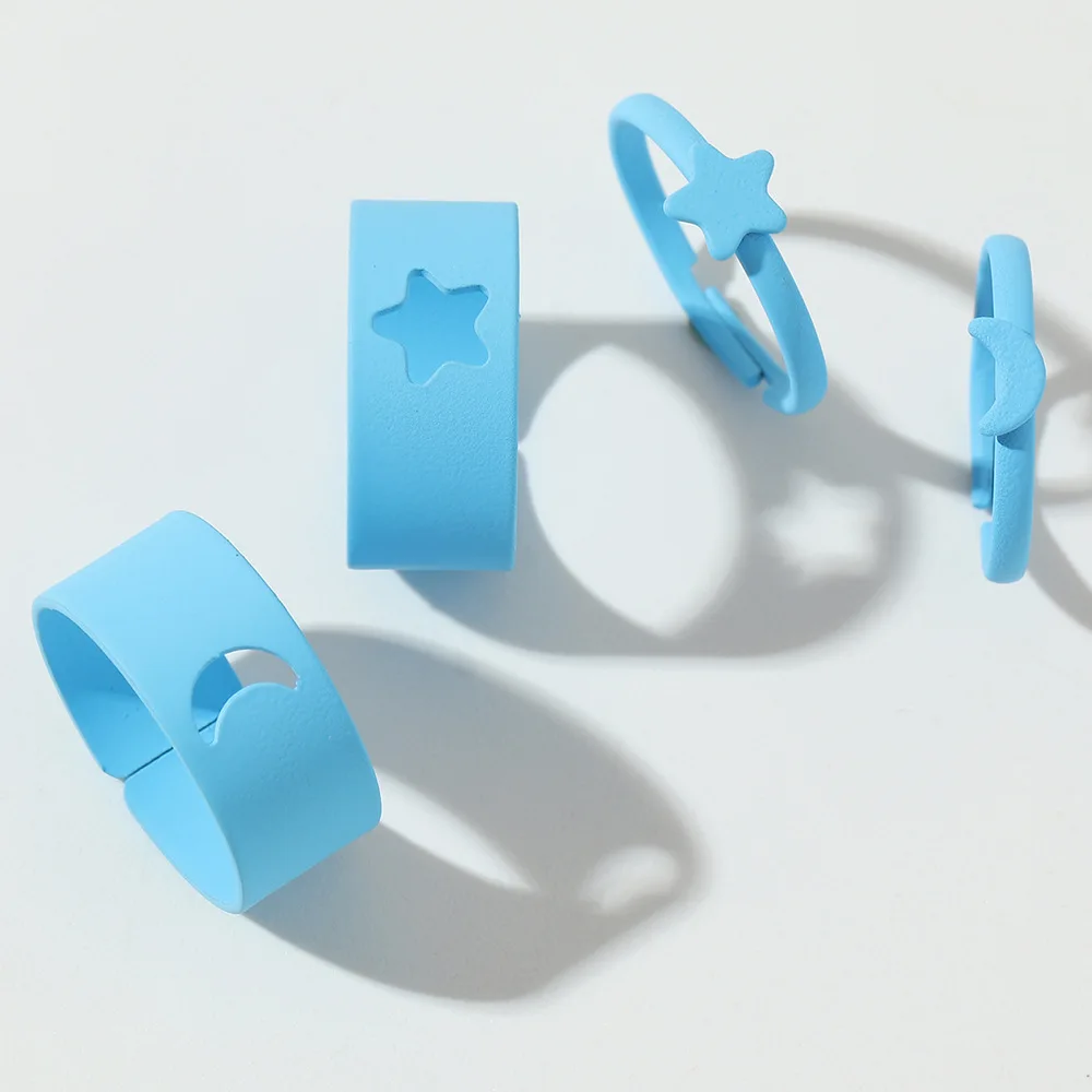 Sindlan 4 шт. Kpop Moon разноцветные подходящие кольца для женщин панк звезда набор странные дела пара эмо Y2k модные ювелирные изделия Aniilos