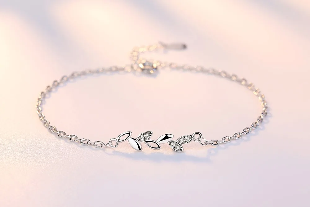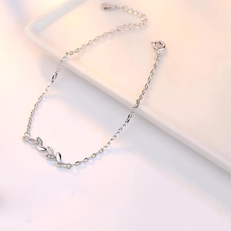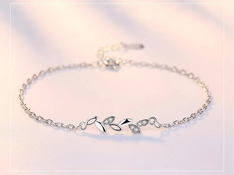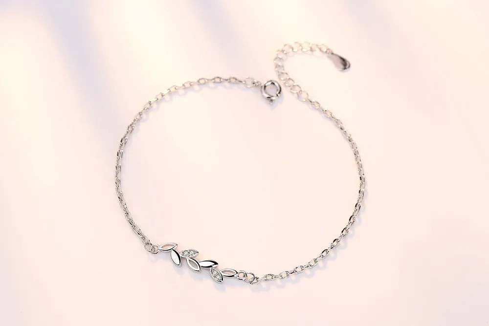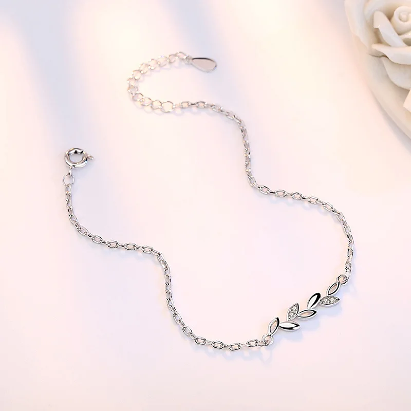 Браслеты женские из серебра 925 пробы с подвесками в виде листьев