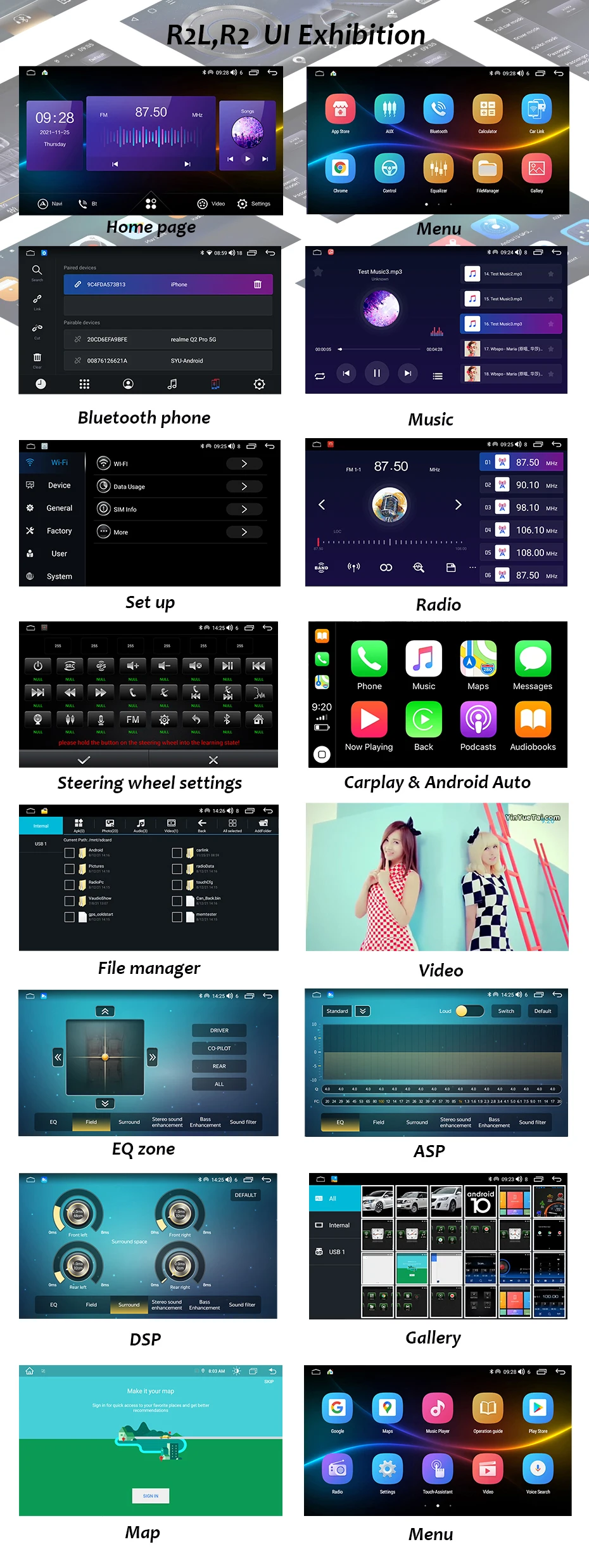 Roadonline умный 4G Android 10 6G 128G автомобильный радиоприемник,...