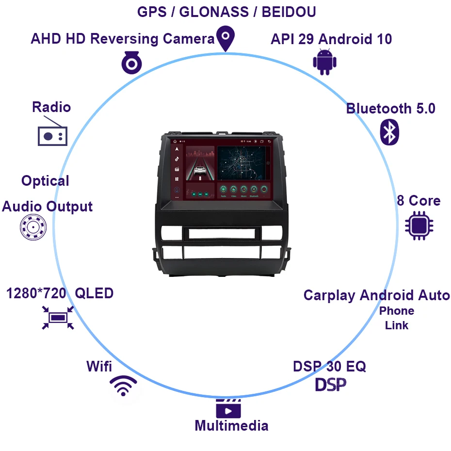 Автомобильный плеер 8 + 256 ГБ для Toyota Land Cruiser Prado 150 20...