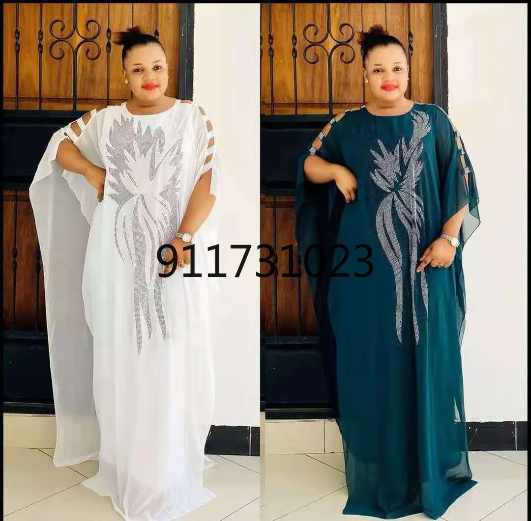 Новая африканская Дашики Женская мода Abaya стильные шифоновые ткани Горячая бурение Свободное длинное платье свободный размер + внутри