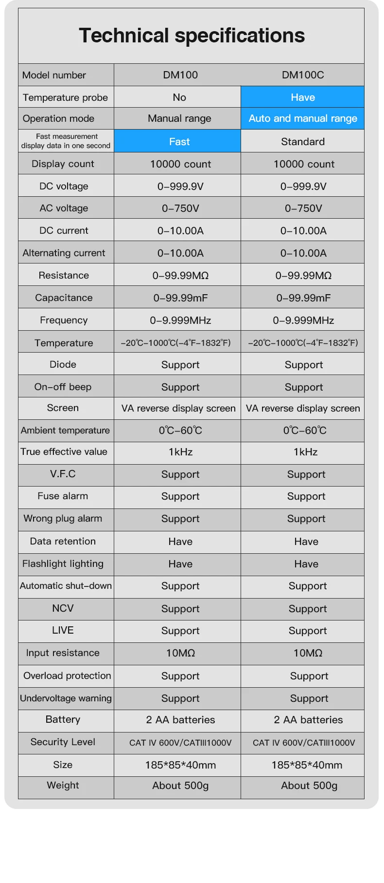 Multiples ventajas en un multinmetro-Alta velocdad de medida-Плавкий soplado recordatorio-HD pantalla-10000 cuenta-De protección-NCV voltaje medida-Cobre puro lineal de seguridad-Medida temperaturaIluminación светодиодный-