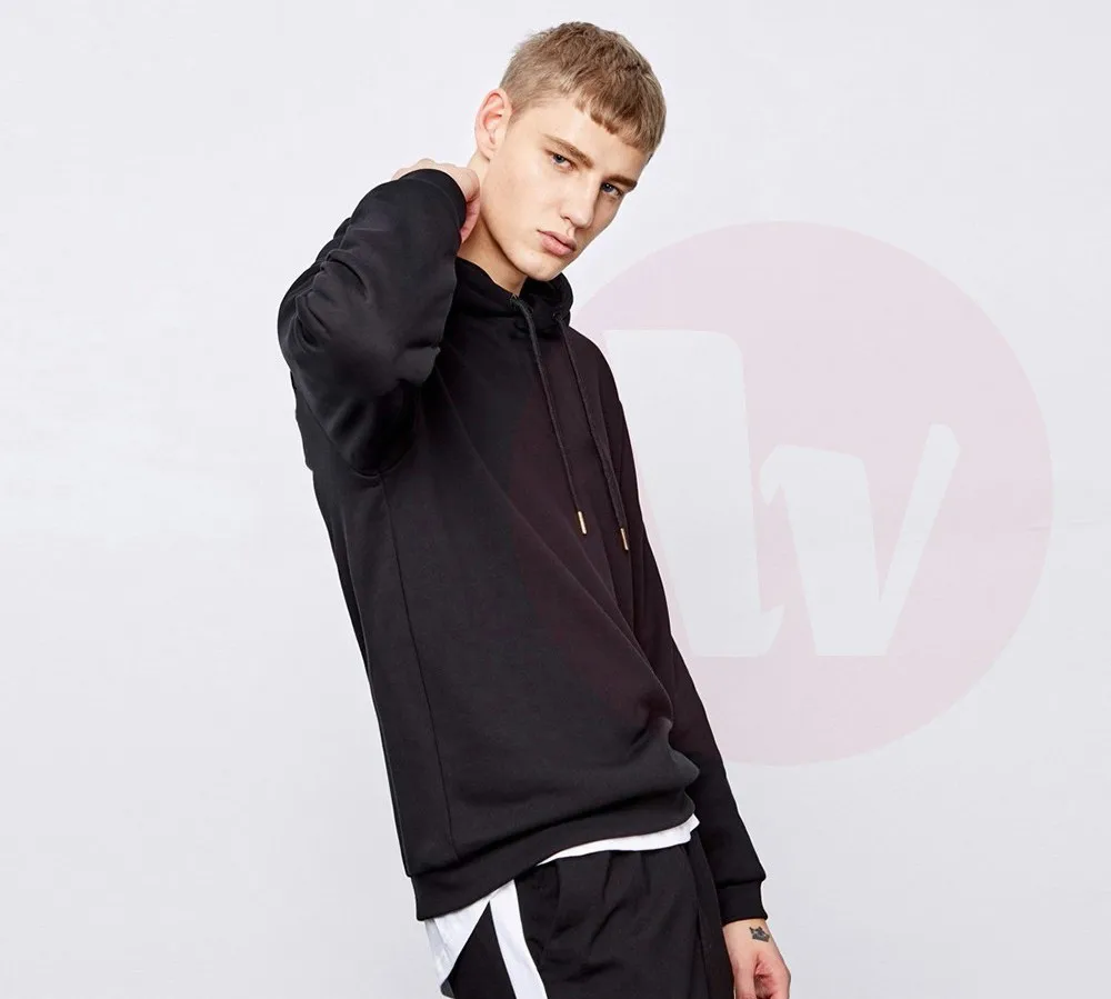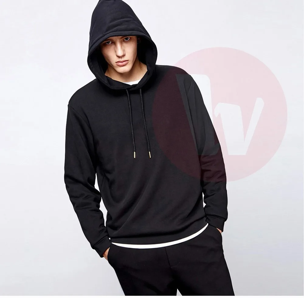 Толстовка мужская черная с капюшоном и длинным рукавом, из хлопка