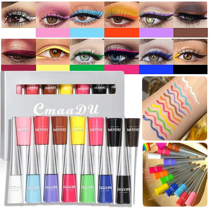 Неоновая жидкая подводка для глаз, карандаш для глаз, Водостойкая Подводка для глаз, красочная, синяя, зеленая, желтая, белая, ручка для глаз, косметика для женщин, 14 шт.компл.