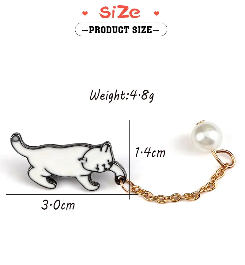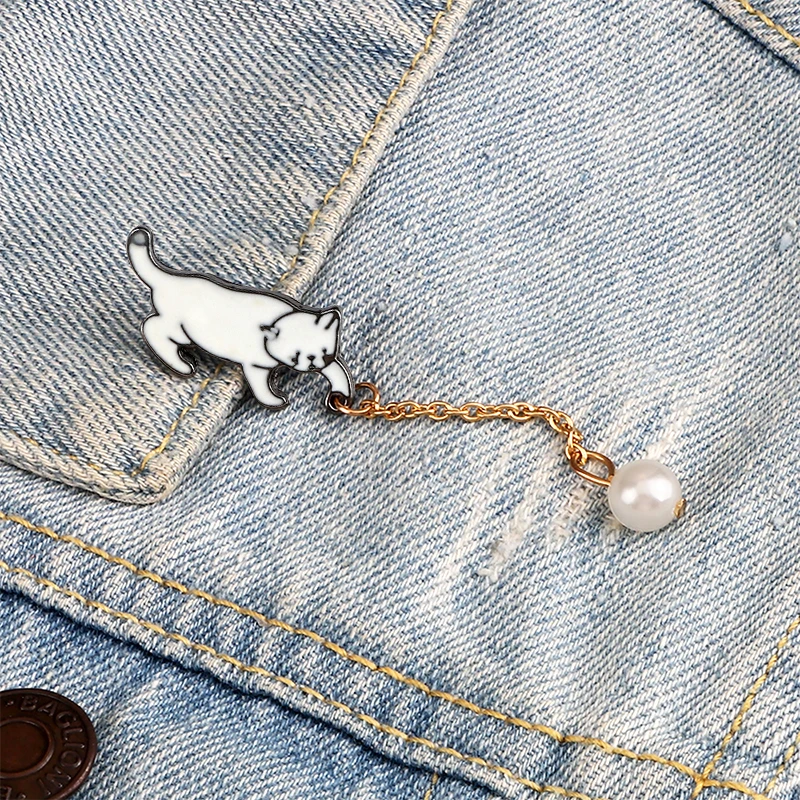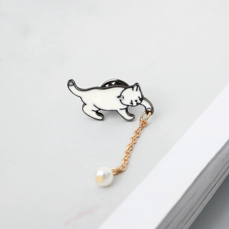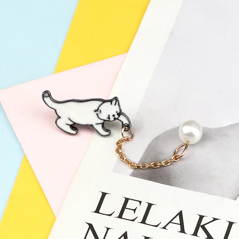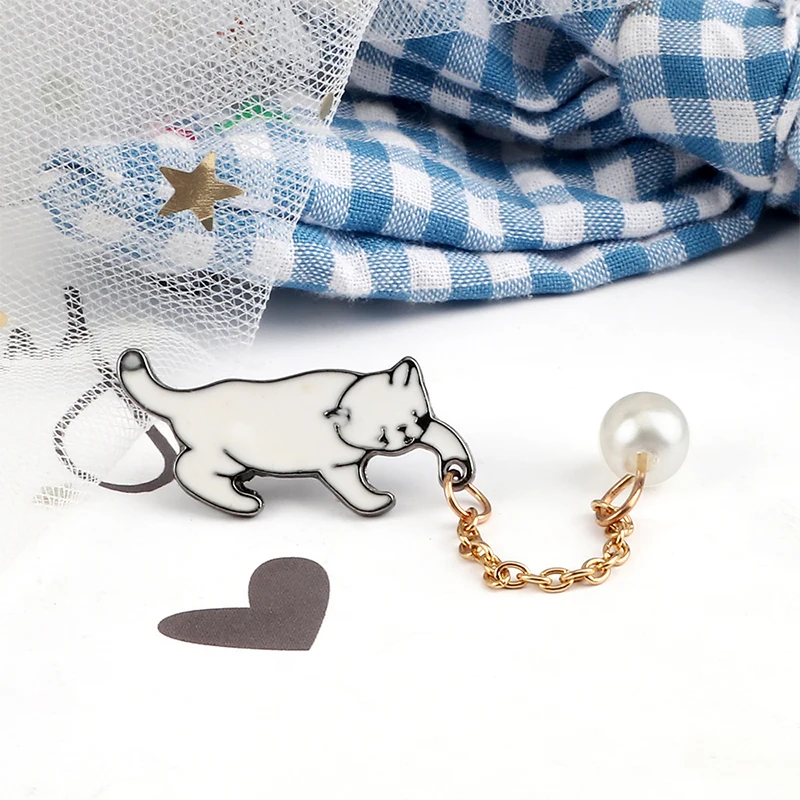 Забавные жемчужные цепочка для кота, броши с милыми животными, эмалированные заколки для лацканов, модные булавки с кисточками, пуговицы, значки для женщин и девушек, подарки