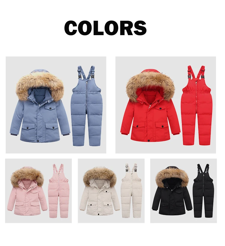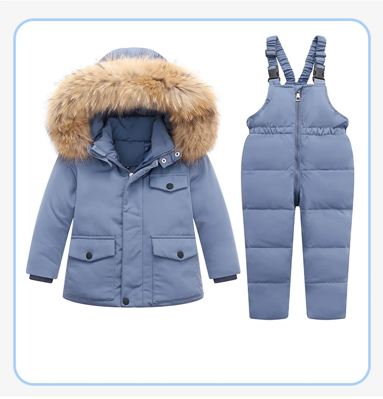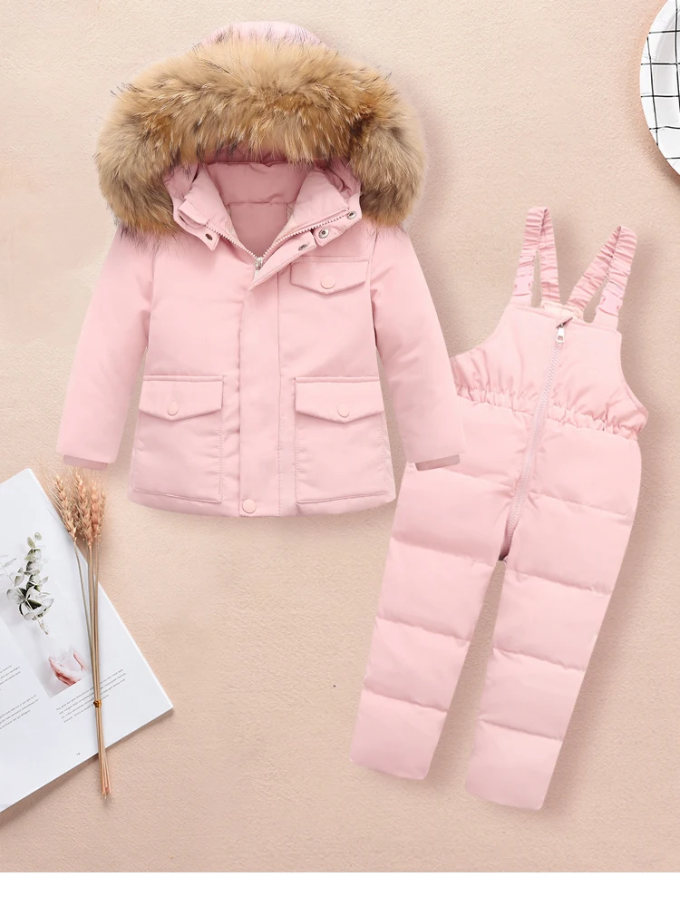 Зимний Детский пуховик теплый лыжный костюм для маленьких девочек утепленное пальто для мальчиков, комплект из 2 предметов, От 1 до 5 лет одежды для малышей