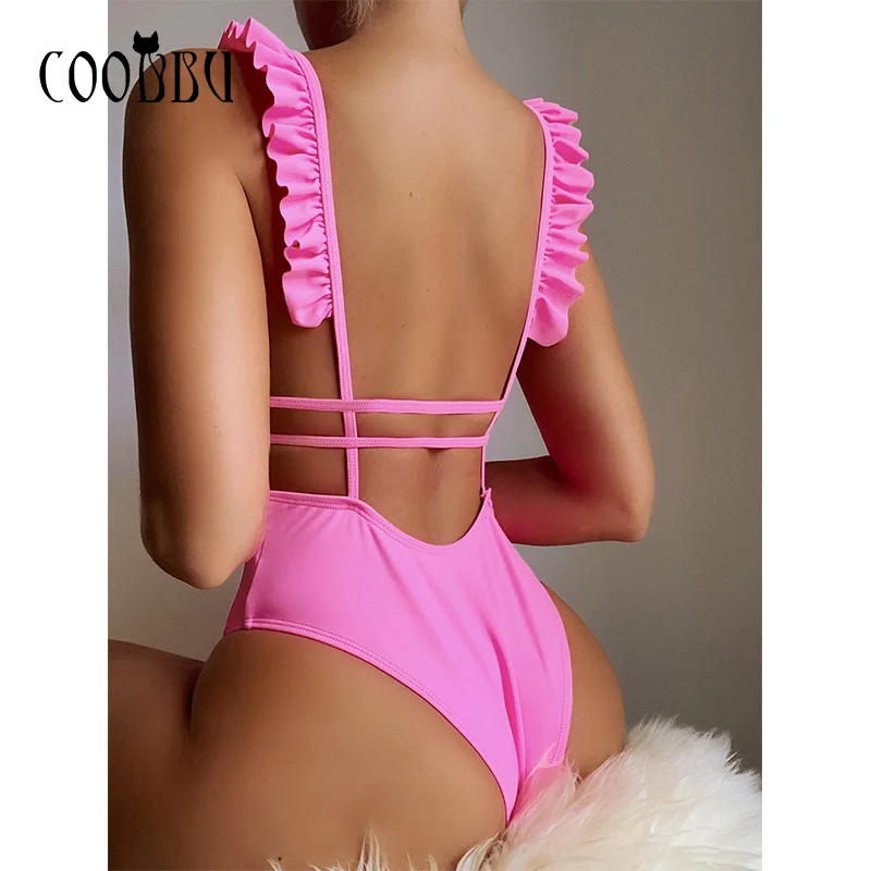 COOBBU 2021 пикантный женский купальник, винтажный слитный купальник с оборками, пуш-ап, однотонный купальник, женская пляжная одежда, купальный костюм, монокини, бикини