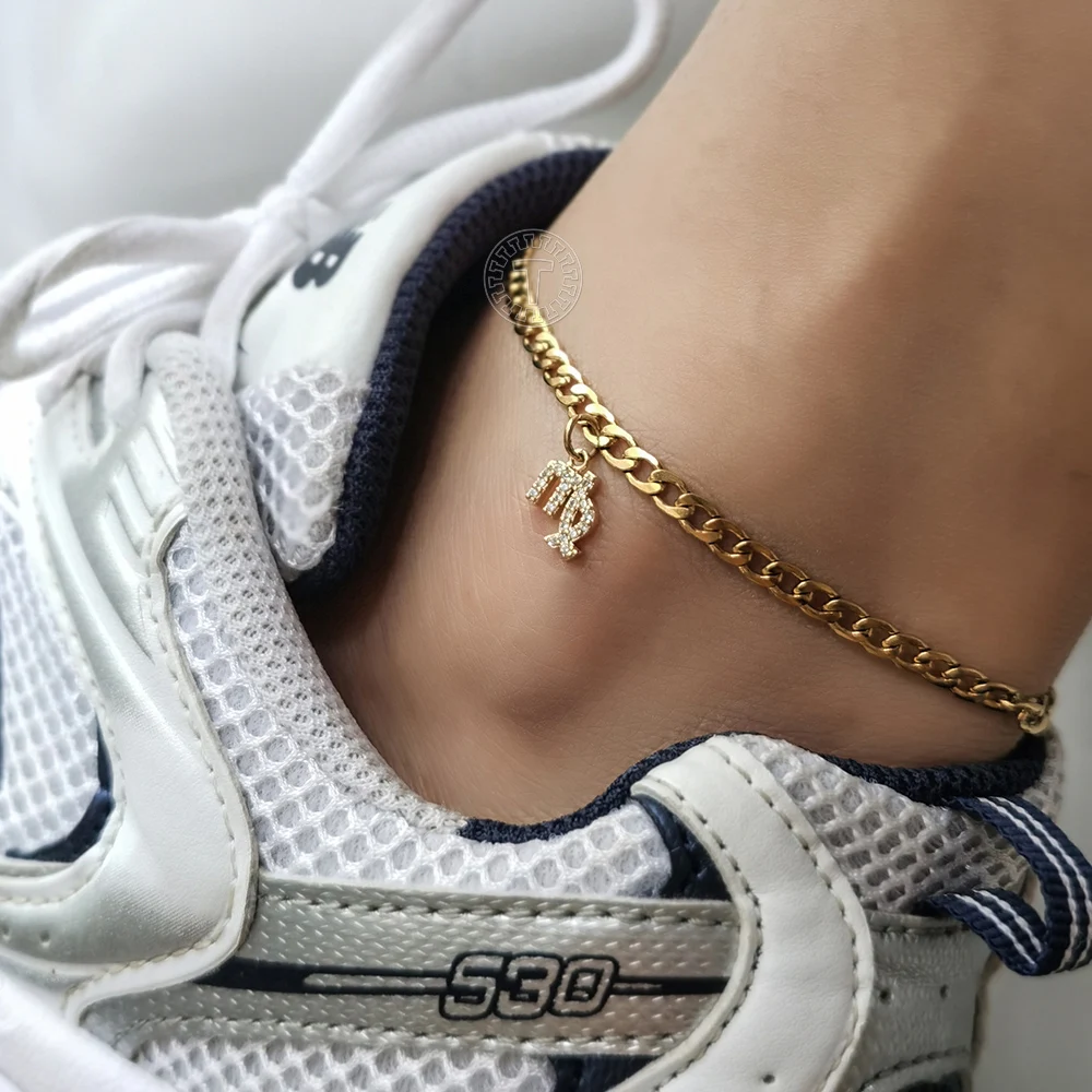 Уникальный Созвездие ножной браслет кристалл CZ Знак зодиака для же...