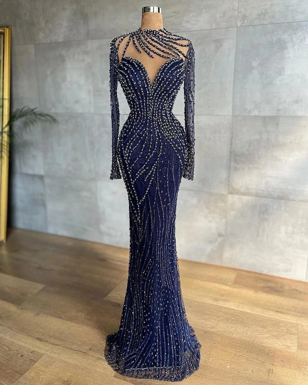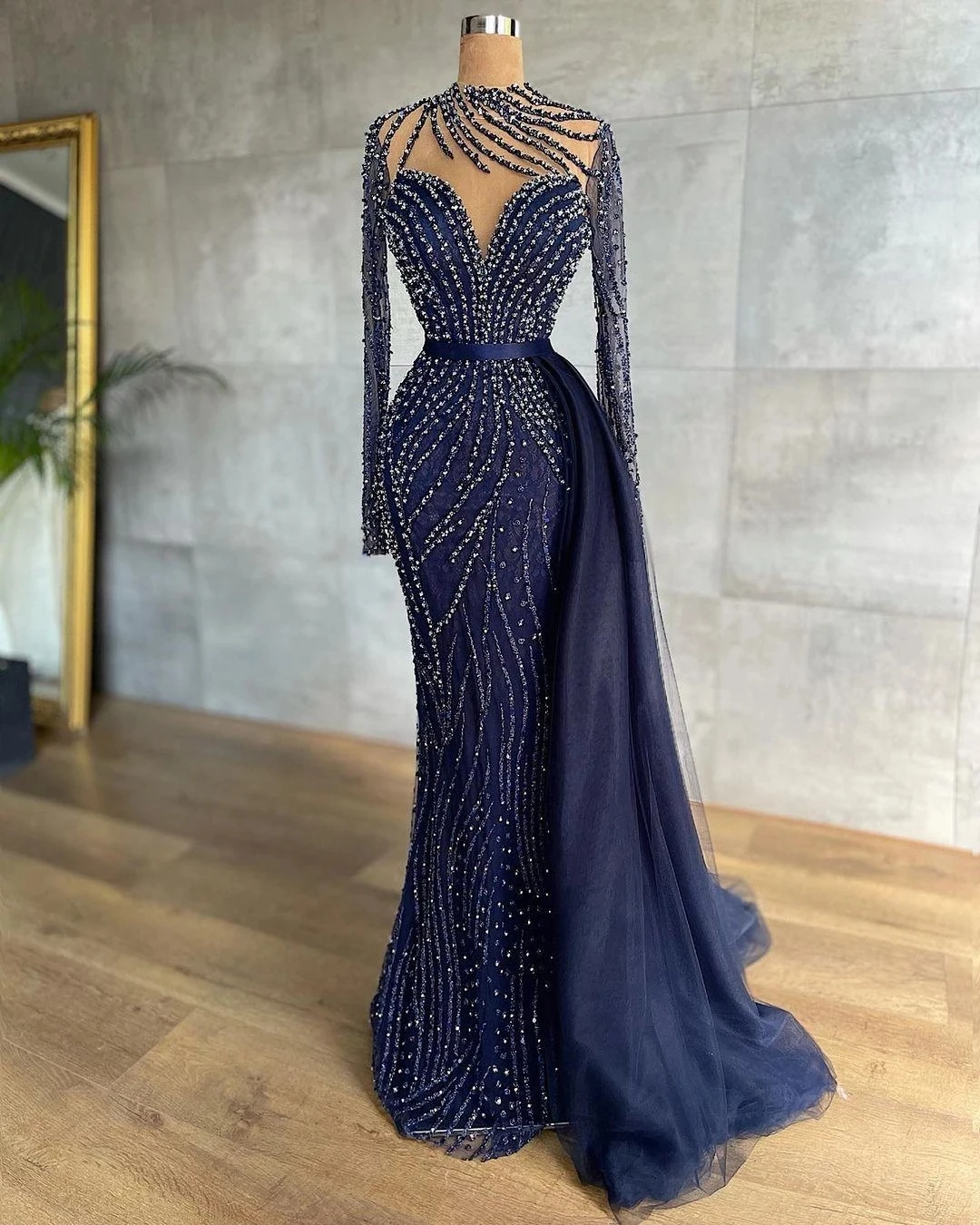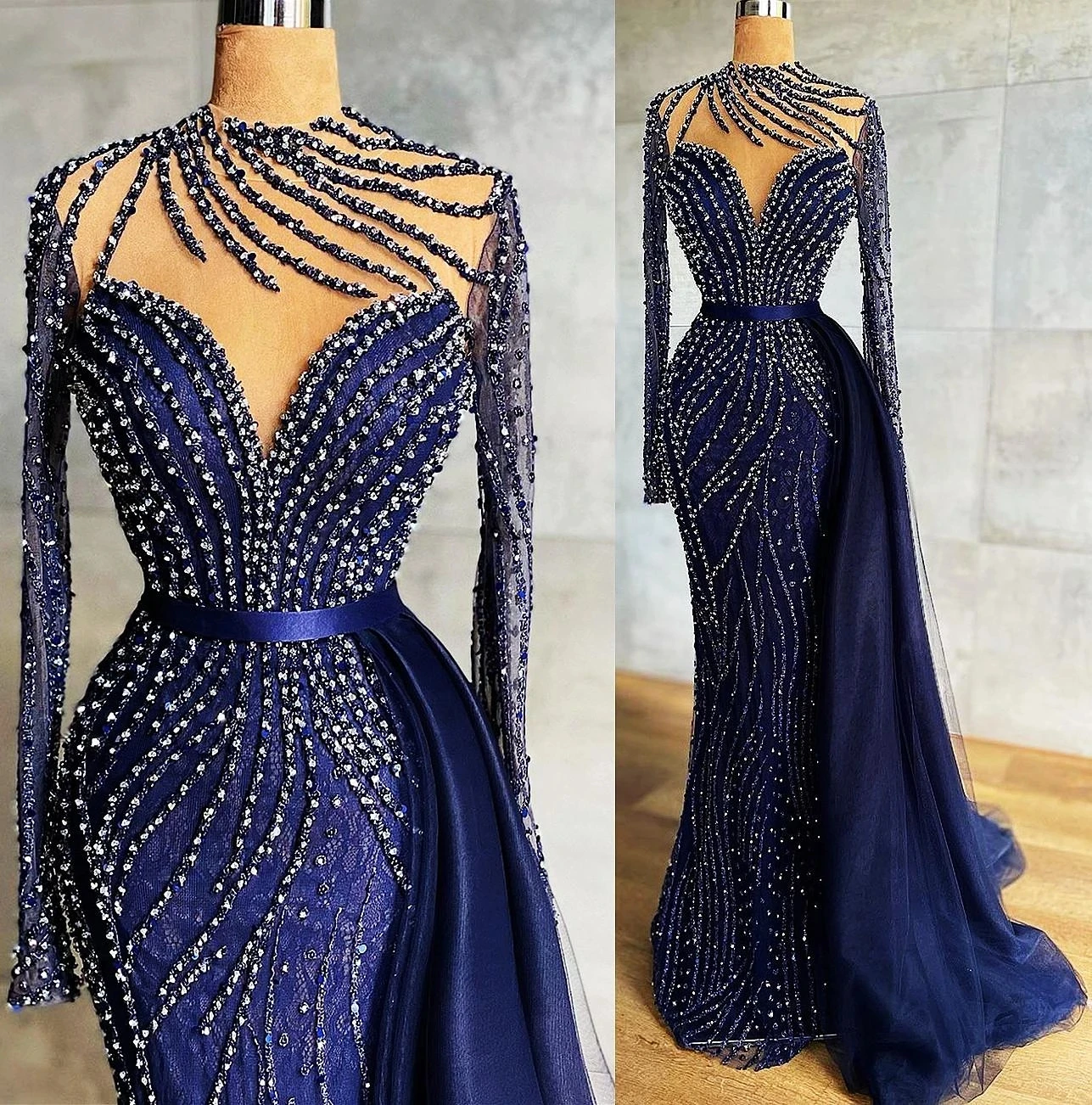 Женское вечернее платье-русалка, темно-синее платье со шлейфом, платье в арабском стиле для выпускного вечера