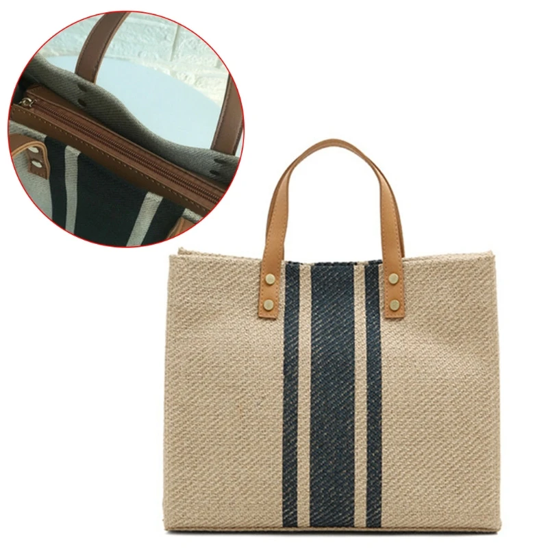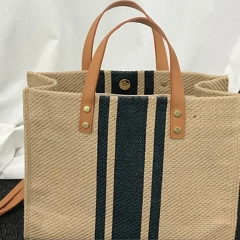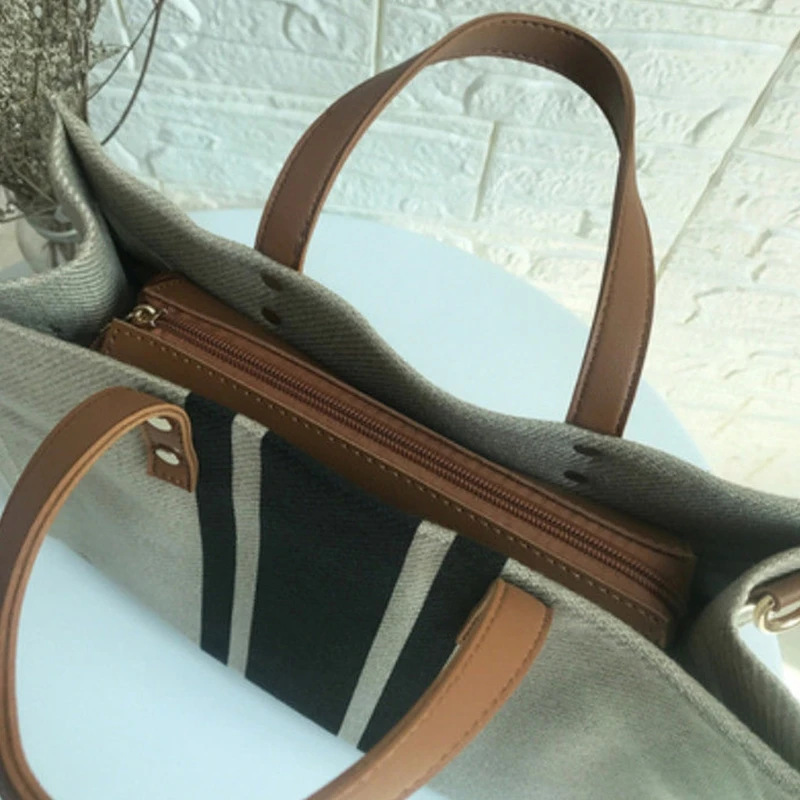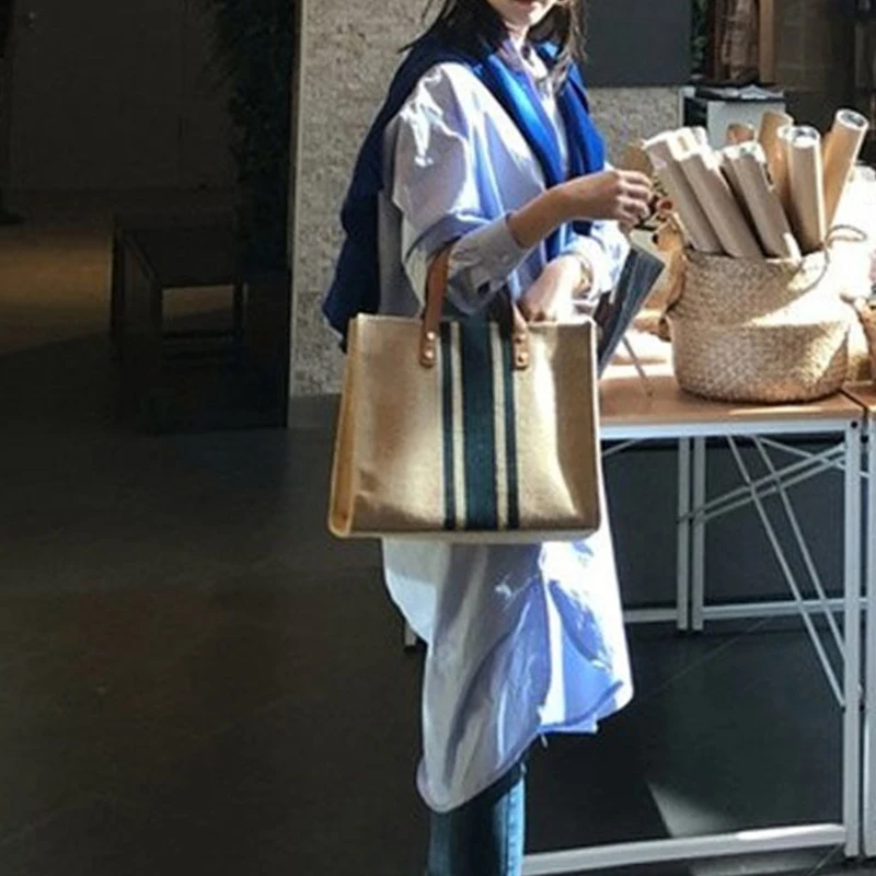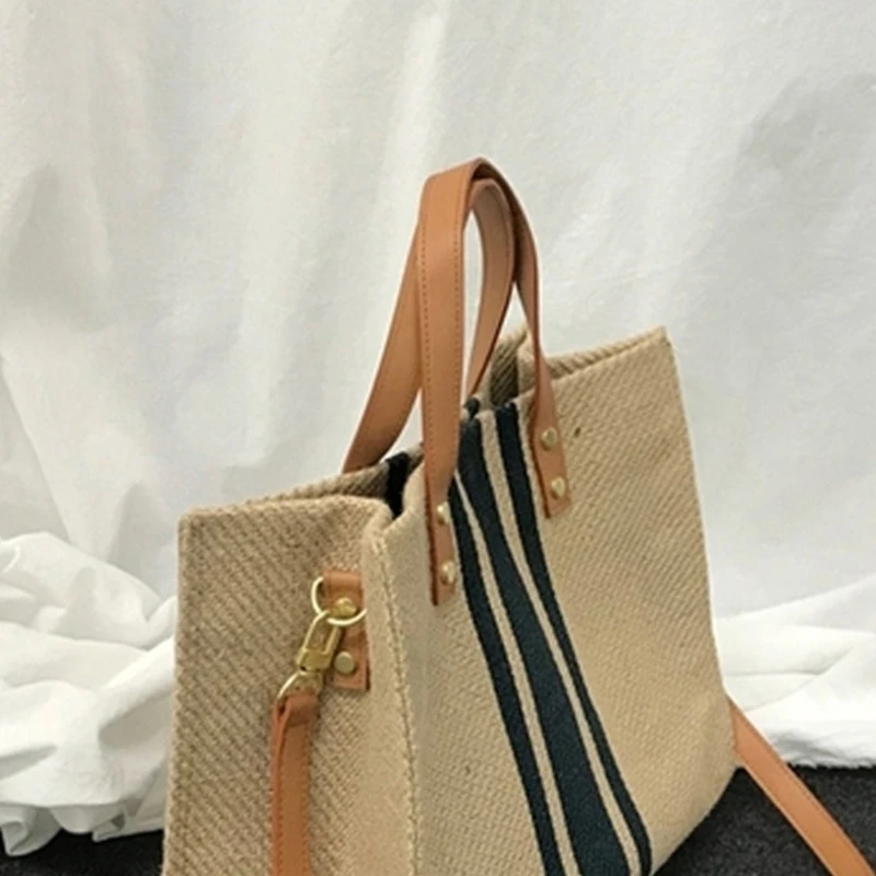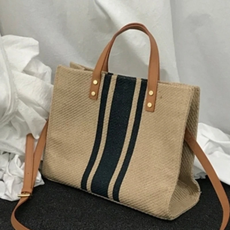 Креативная Женская Студенческая полосатая Холщовая Сумка, вместительная простая модная сумка-тоут, переносная деловая рабочая сумка через плечо со съемным ремешком