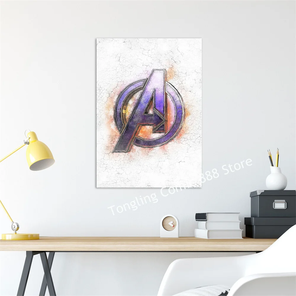Значок Marvel с супергероями Мстители, плакат, Картина на холсте, настенное искусство, декор на тему Marvel для кафе, бара, отеля, общежития, офиса, театра