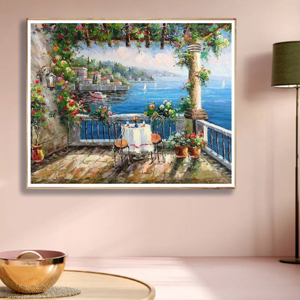 Картина из страз 5D "сделай сам", пейзаж, оконная ваза квадратных с...