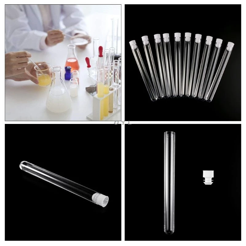 10 шт., прозрачные пластиковые пробирки с закручивающейся крышкой, 15*150 мм