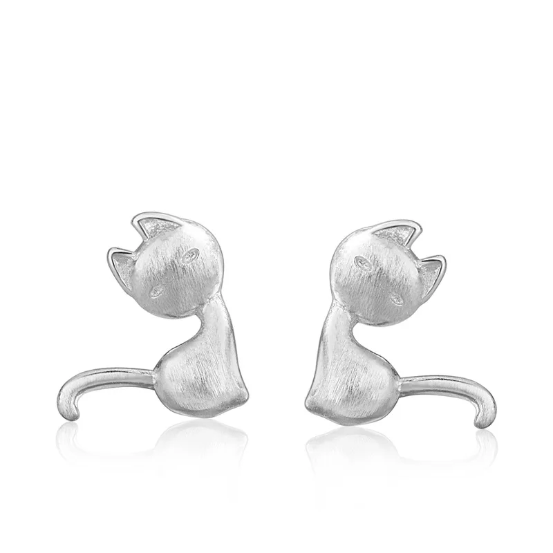 Модные серьги-гвоздики в виде кота серебряного цвета для женщин и д...
