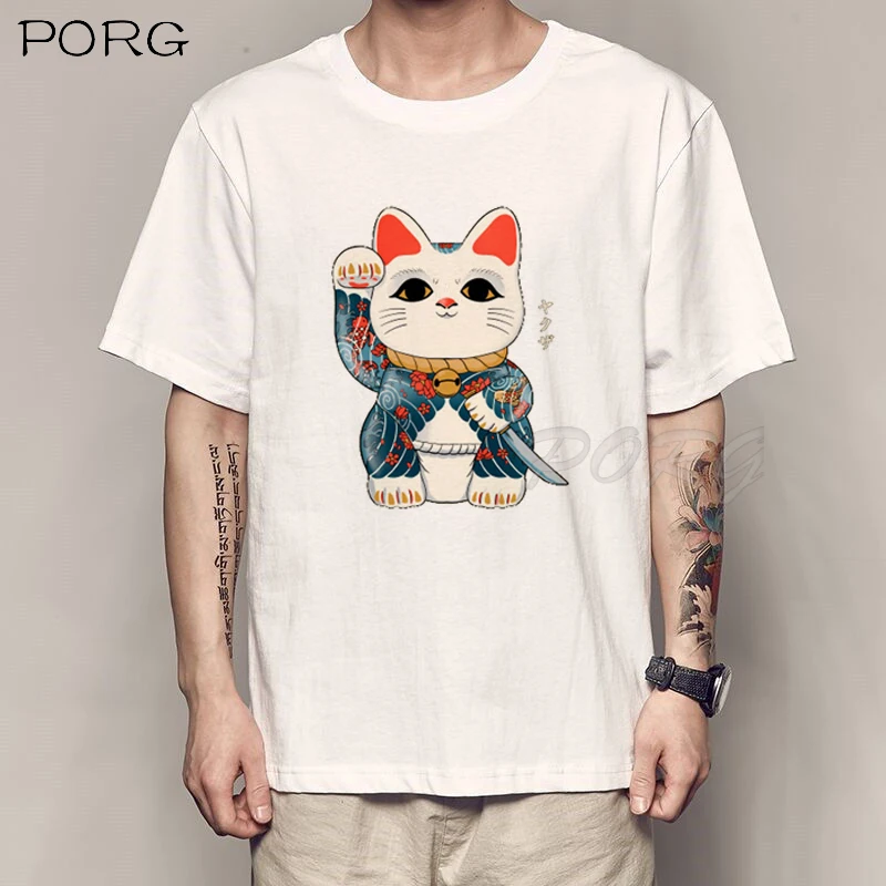 Футболка мужская с принтом осьминога, модная тенниска с японским ри...