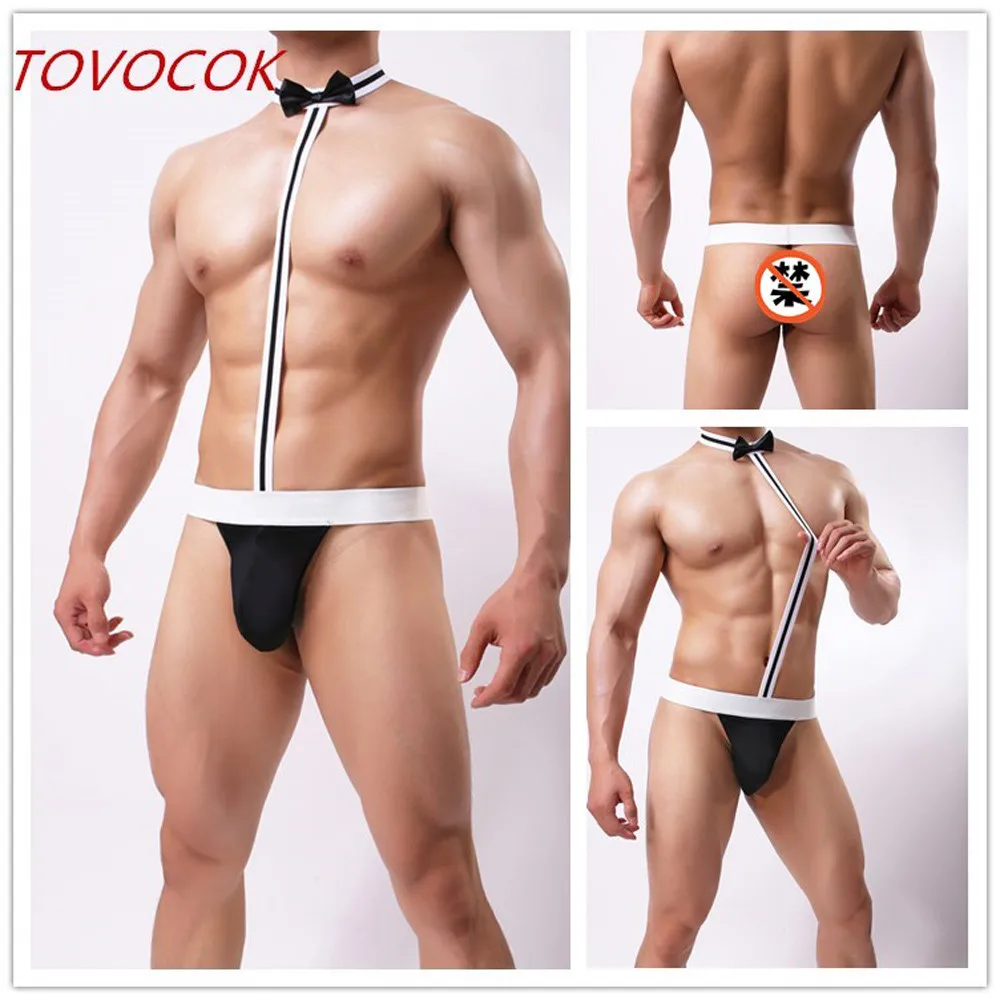 Новинка, сексуальное мужское нижнее белье, танкини, костюм Официанта, боди, нижнее белье, трусы