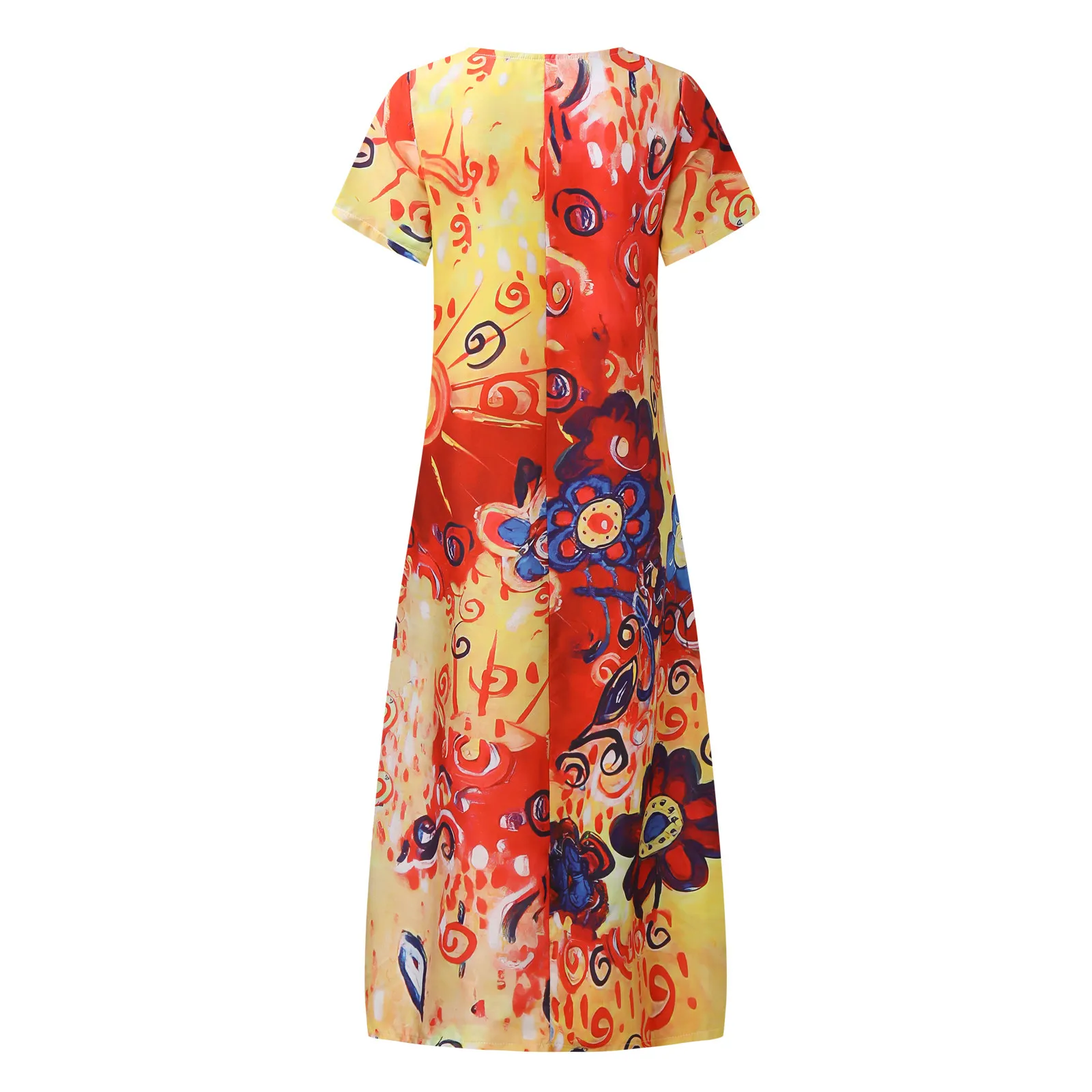 Женское Повседневное платье с коротким рукавом, длинное платье большого размера с круглым вырезом и цветочным принтом и кошкой, лето 2021