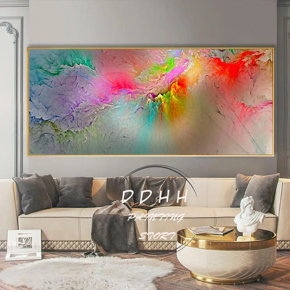Большая картина маслом, настенная живопись, красочная абстрактная к...