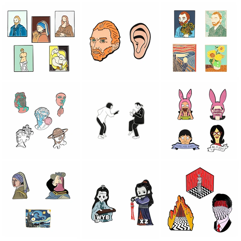 2-5 шт.компл. персонаж из мультфильма Автопортрет на заказ эмалированный значок Ван Гога брошь в стиле аниме для фанатов друзей двойная оптовая продажа