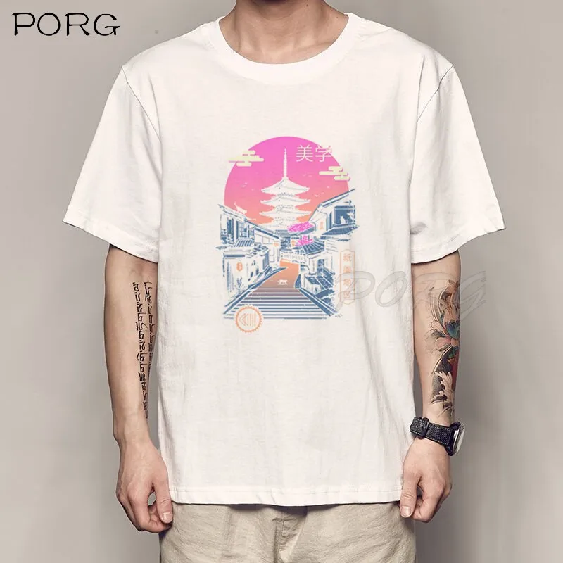Винтажная Мужская футболка с японским Аниме Манга, уличная одежда в...