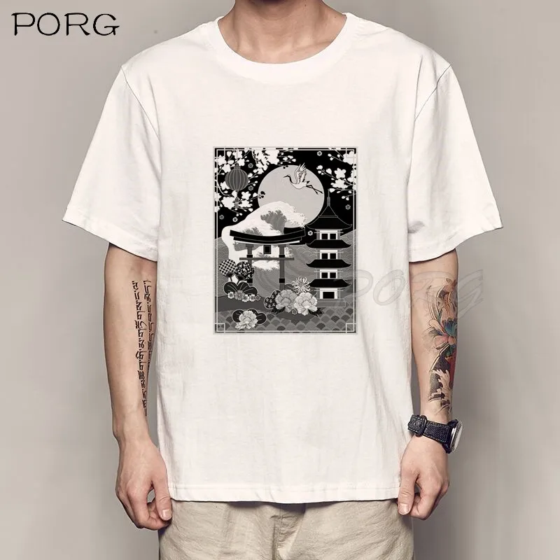 Футболка Kanagawa мужская с японским принтом, крутая Повседневная т...