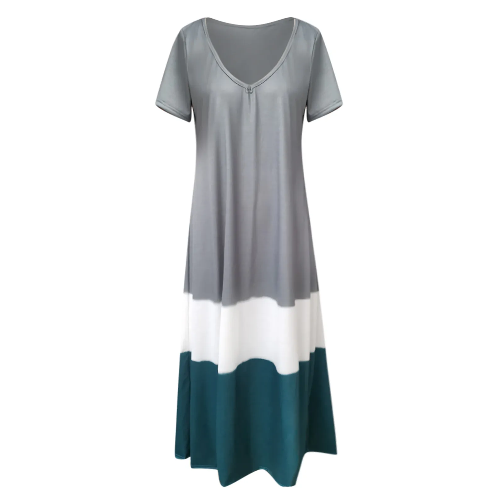 Женское длинное платье-макси с коротким рукавом и V-образным вырезом