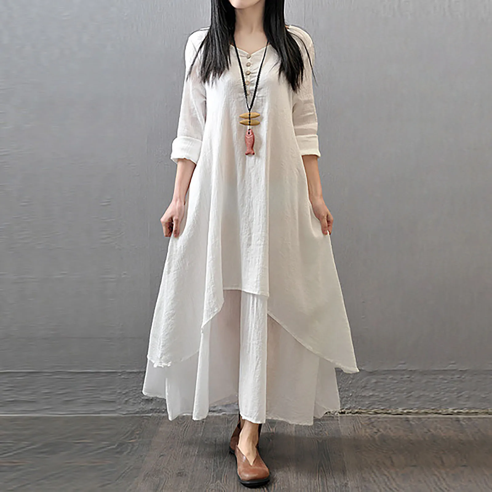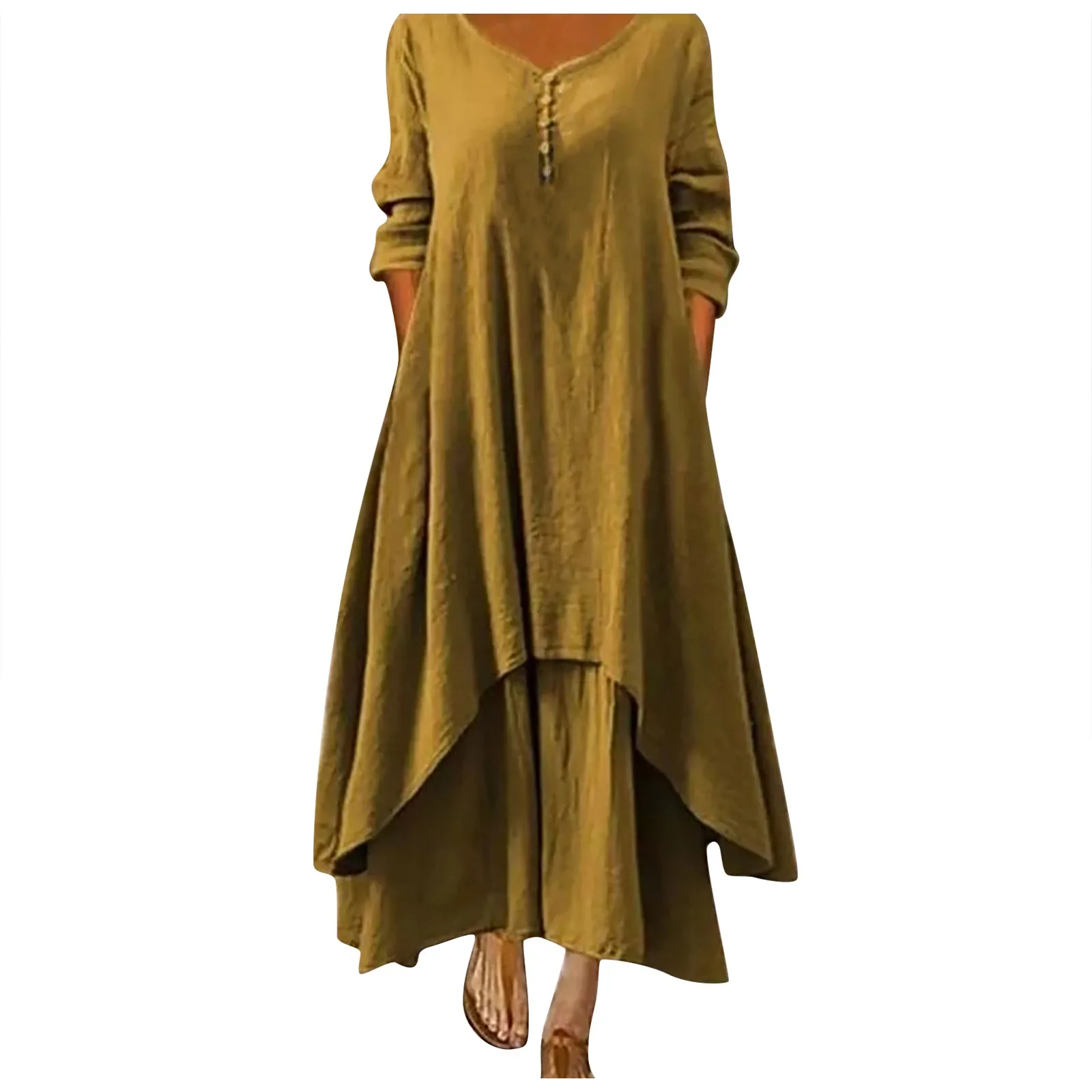 Женские летние платья 2021, женские льняные двухслойные асимметричные платья макси на пуговицах с круглым вырезом