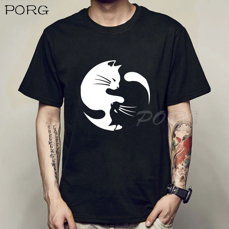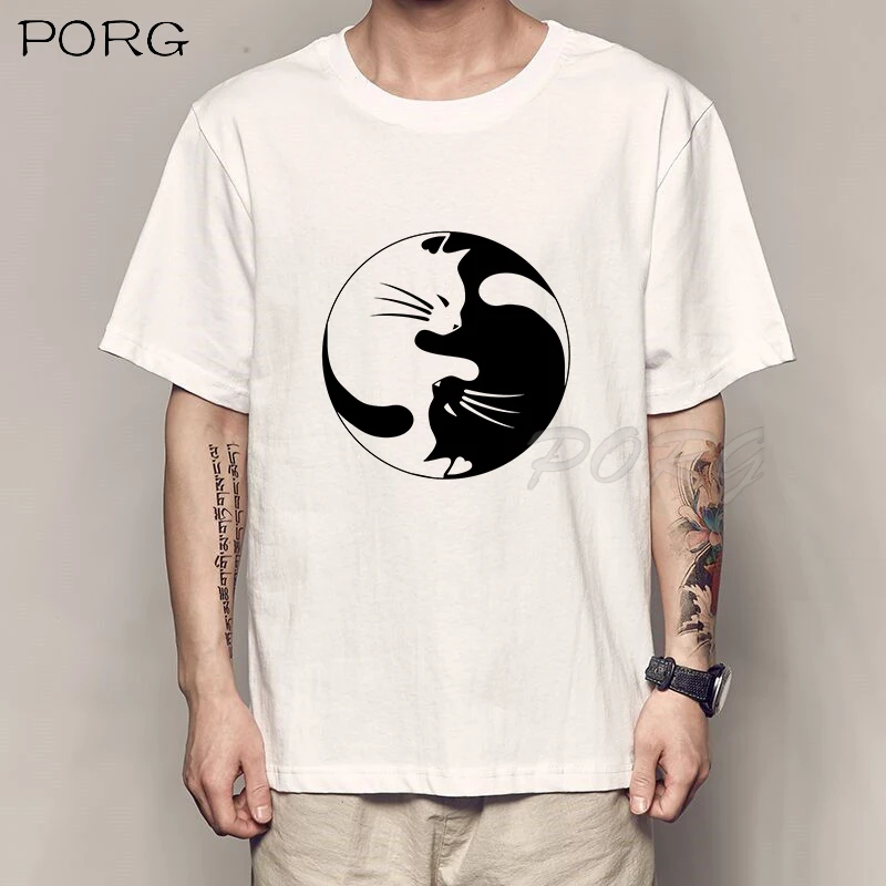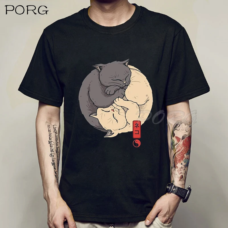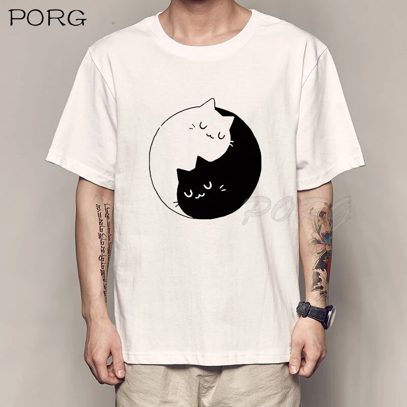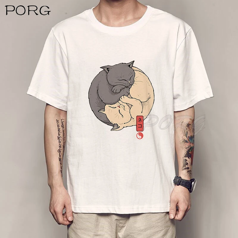 Милые Винтажные Футболки с кошками Инь-Ян, японское аниме манга Харадзюку, модная футболка с круглым вырезом, уличная одежда, повседневные летние топы, футболка