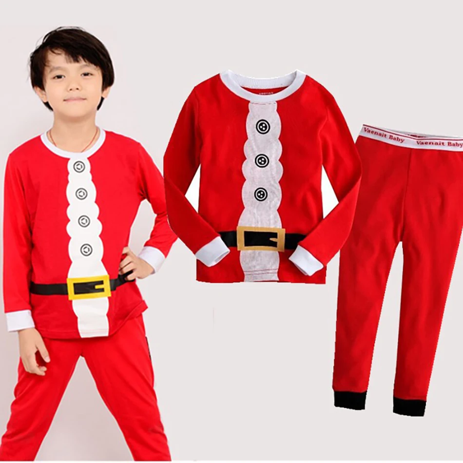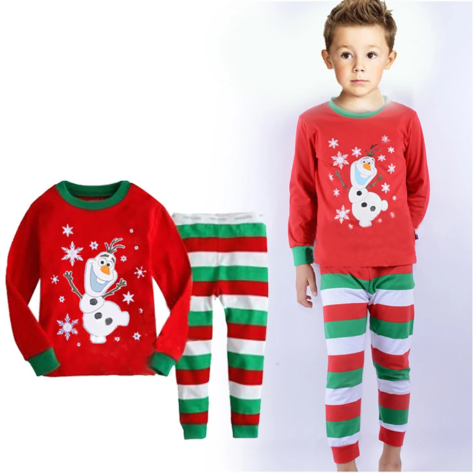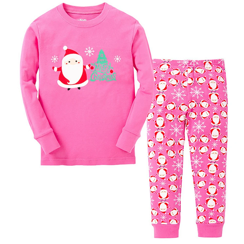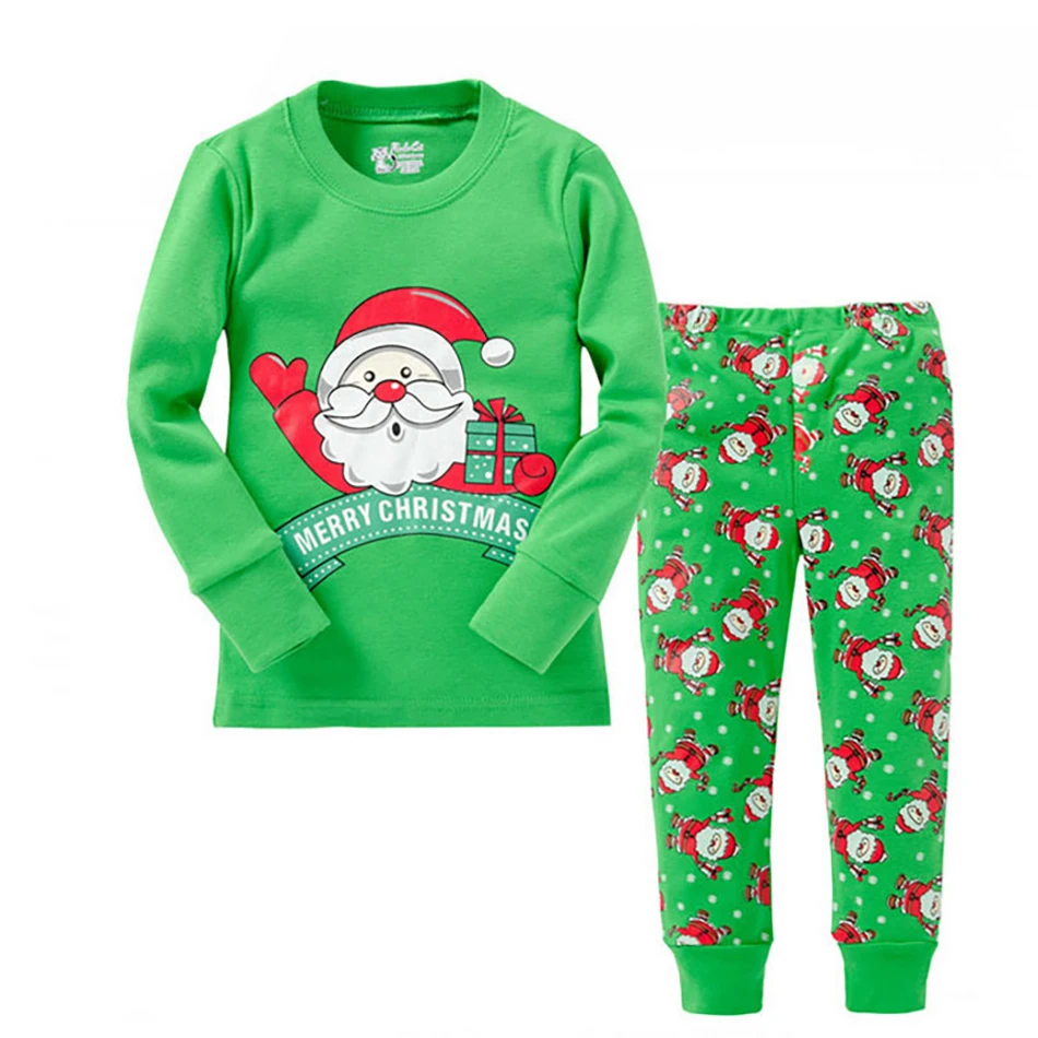 Пижама для мальчиков и девочек, Повседневная хлопковая, мягкая, приятная для кожи, с длинным рукавом, штаны, 2 шт., рождественские пижамные наборы