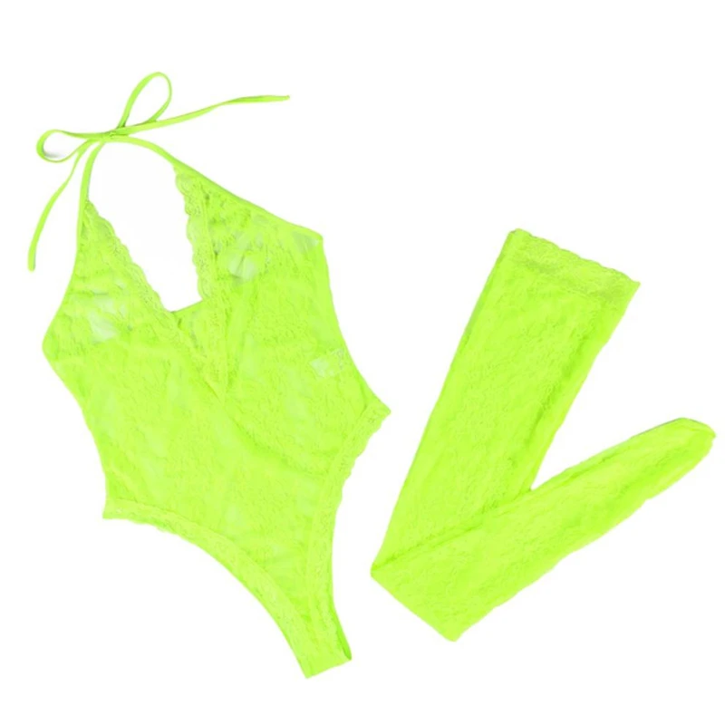Чулки Тедди, женское прозрачное боди с цветочным рисунком, боди из двух частей, обтягивающее боди-комбинезон с открытой спиной, Кружевное боди