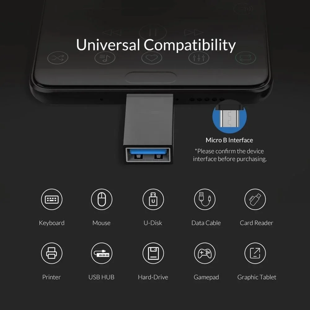 Адаптер OTG с черным брелоком для Xiaomi Note 5, Samsung Edge J3, J...