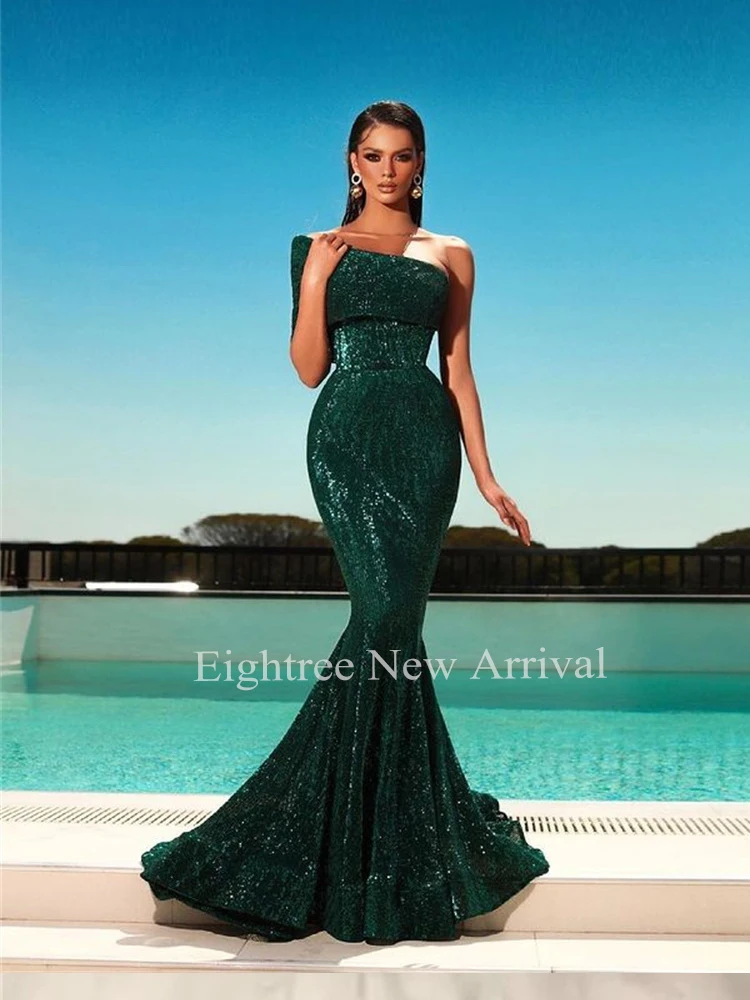 Зеленые платья для выпускного вечера на одно плечо с Боковым Разрез...