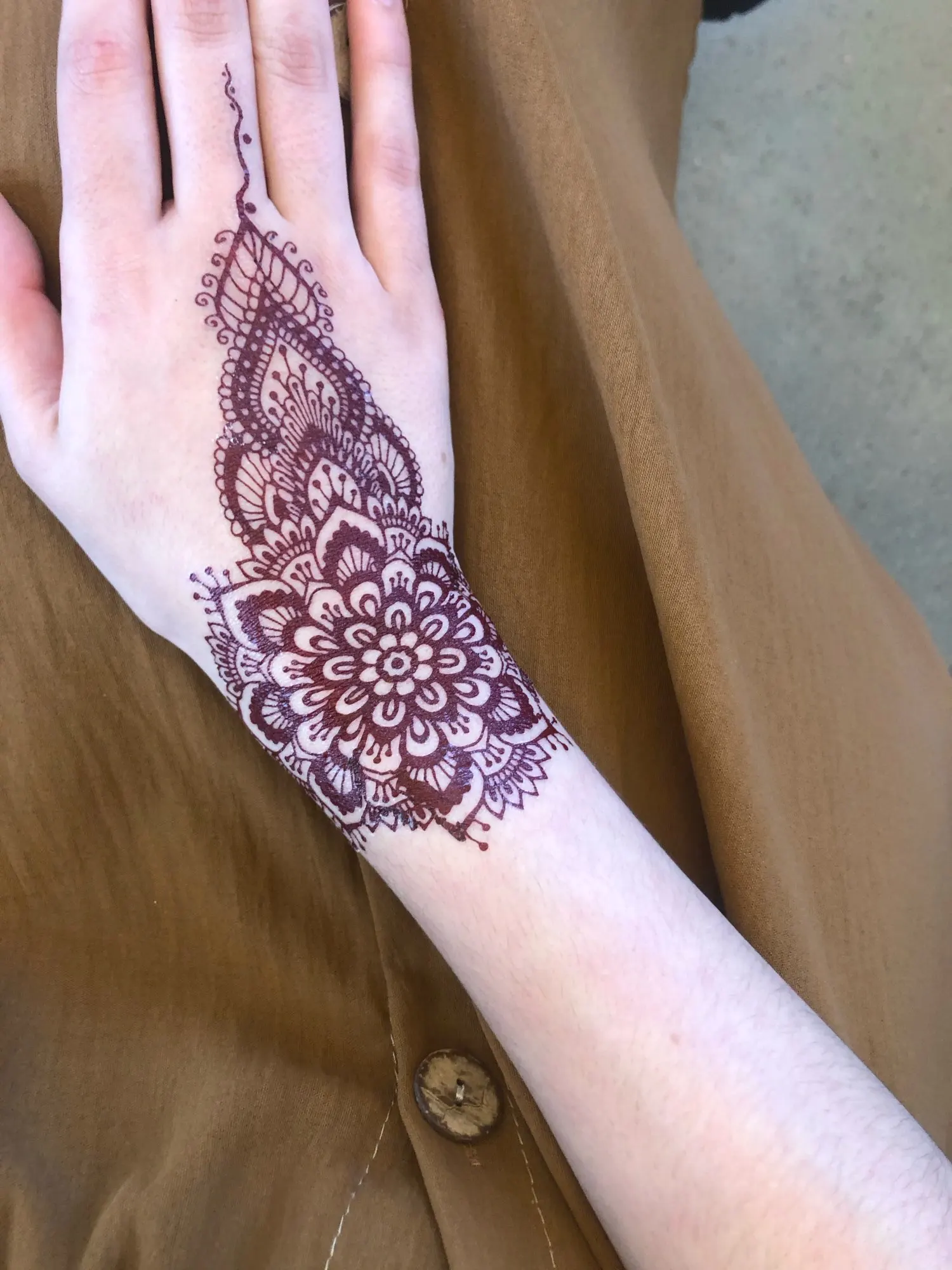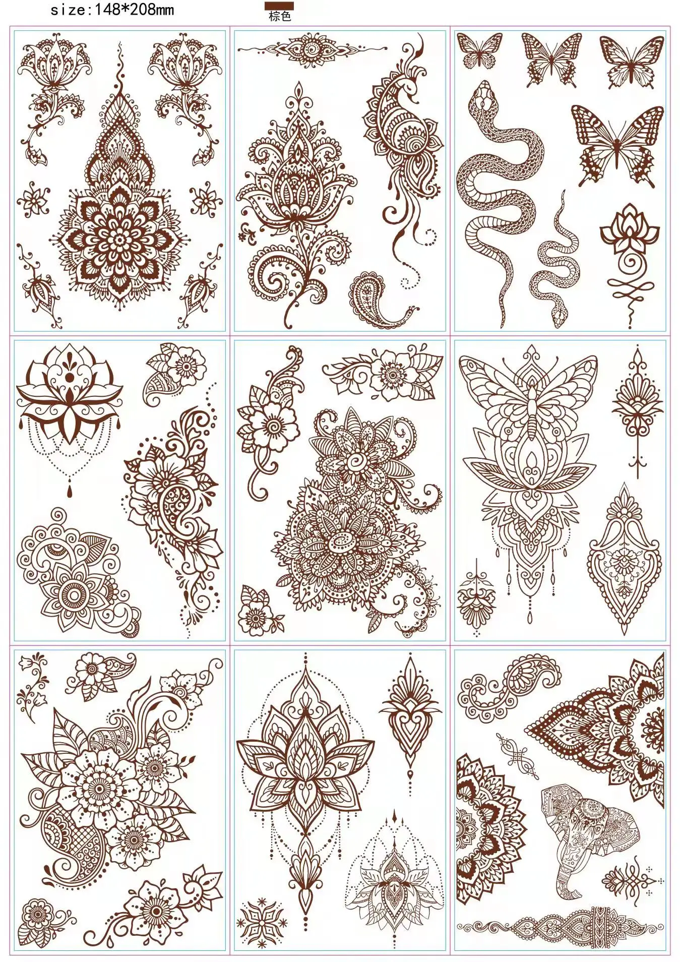 Тату-наклейка хной, временная коричневая хна, нагрудная хна, кружевные серьги, хна, мандала, флеш-тату, наклейка, боди-арт на руку, искусственная татуировка для женщин и мужчин