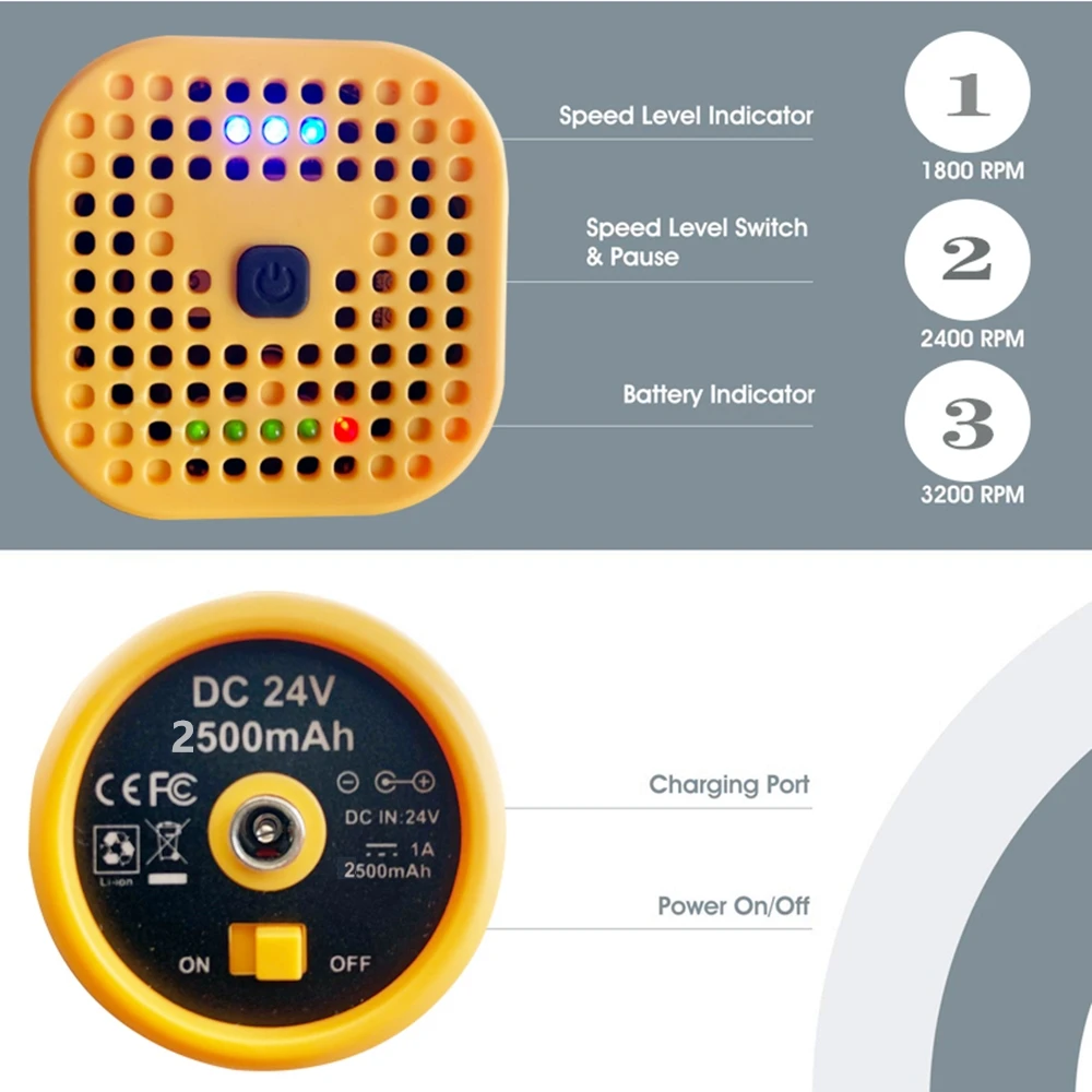 --3 уровня регулировки:Уровень 1 - 1800/мин, уровень 2 - 2400/мин, уровень 3-3200р/мин