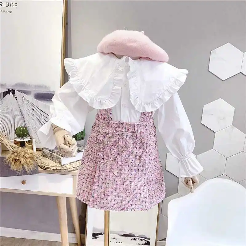 Комплект классической одежды для девочек из 2 предметов, Осенний Топ с длинным рукавом и юбка принцессы, школьная форма на день рождения, одежда на зиму 1-8 лет