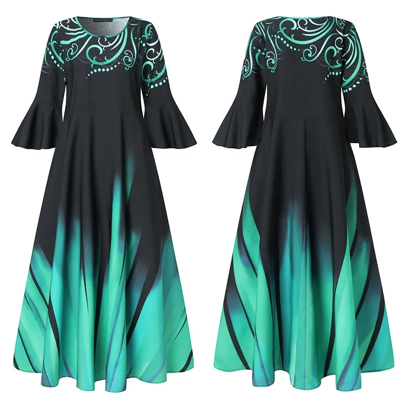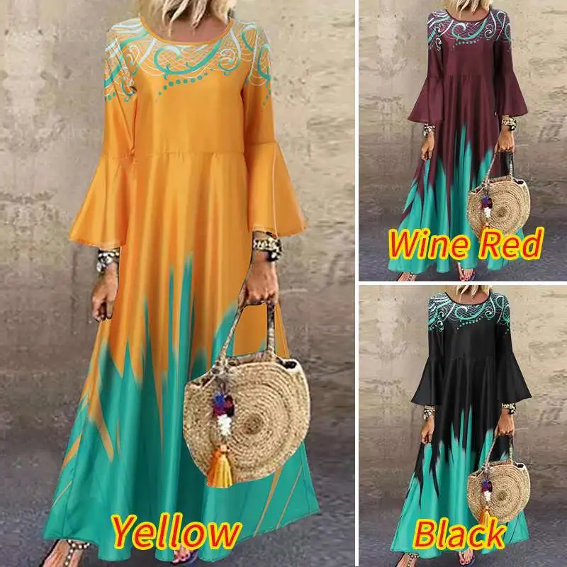 Женский летний сарафан ZANZEA 2022, стильное платье макси с принтом, Повседневное платье с цветочным принтом и Расклешенным рукавом, женское праздничное платье с круглым вырезом