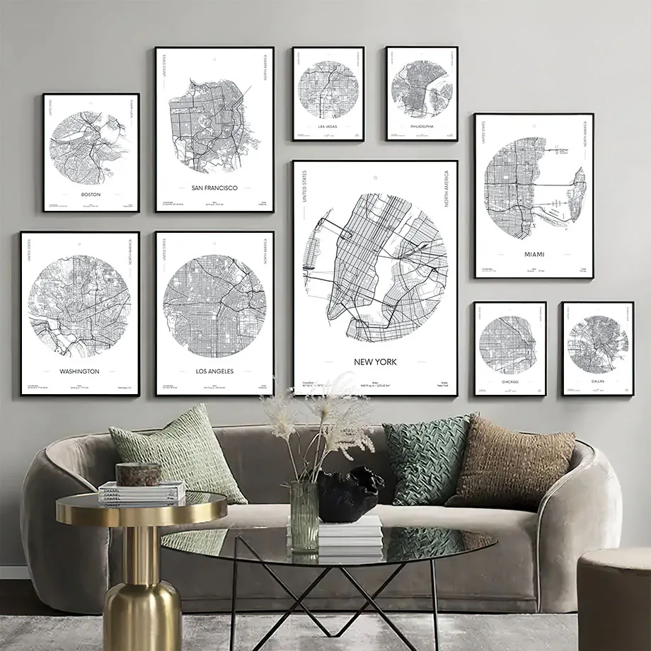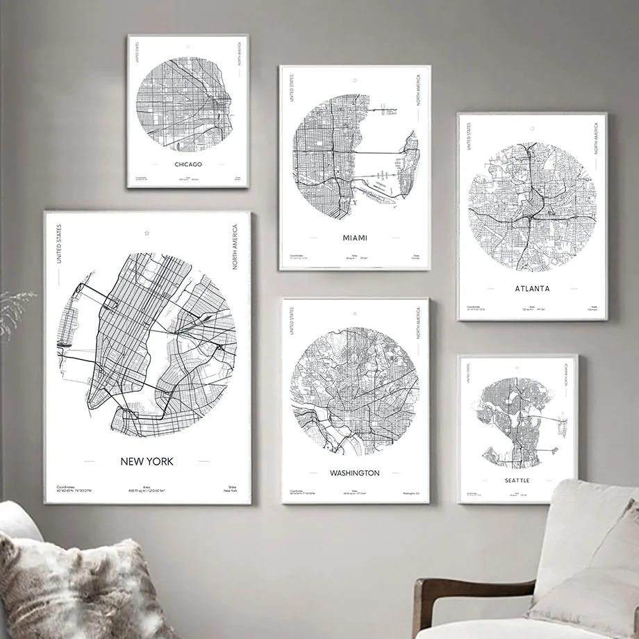 Нью-Йорк Вашингтон Лас-Вегас карта американского города настенная Картина на холсте северные постеры и принты настенные картины для гостиной