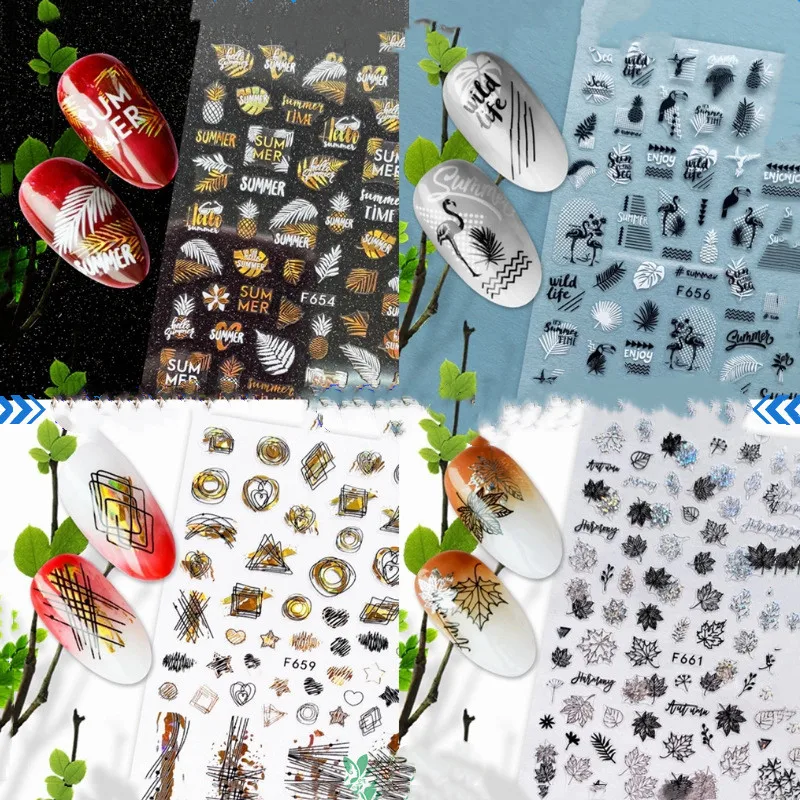 1 шт. Черный Белый Золотой 3D стикер для ногтей летние листья дерево Геометрические линии шаблон клейкая переводная наклейка DIY Украшение для ногтей