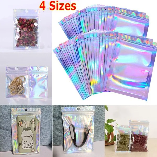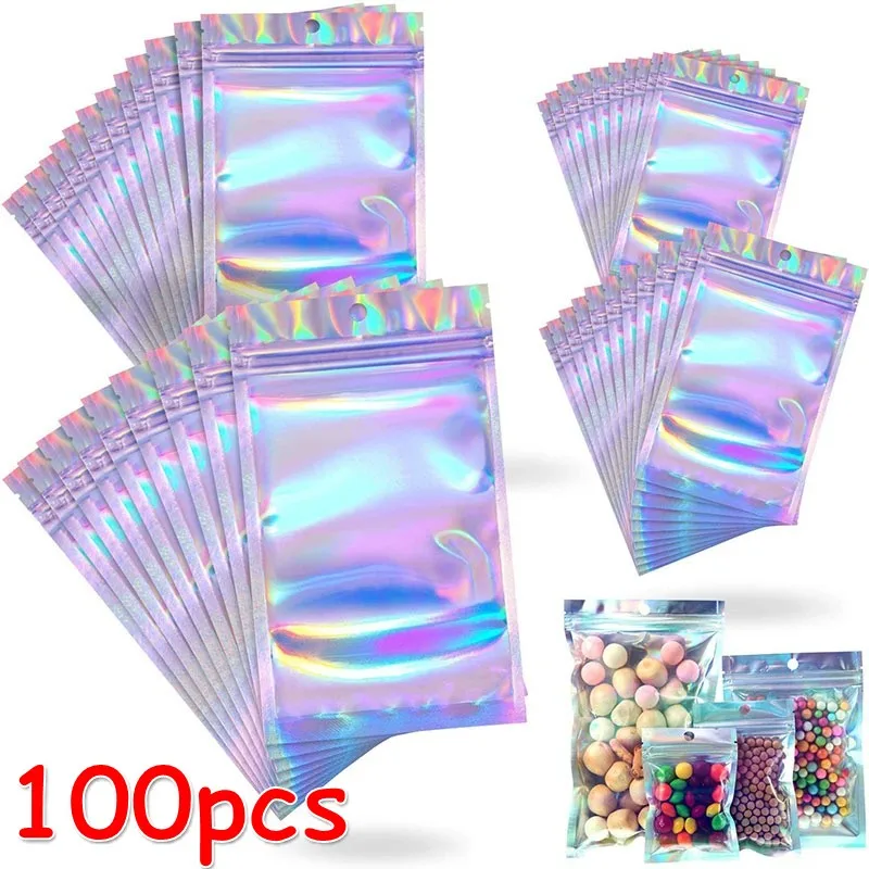 100 шт., пластиковые голографические пакеты с застежкой-молнией