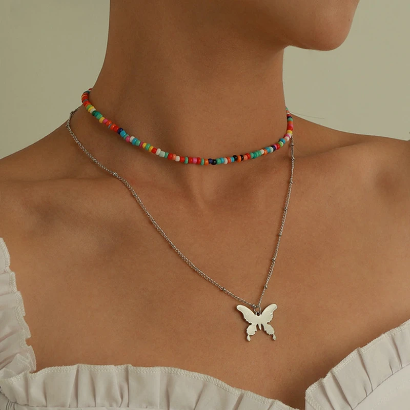 Модное многослойное женское ожерелье красочными бабочками и бантика...