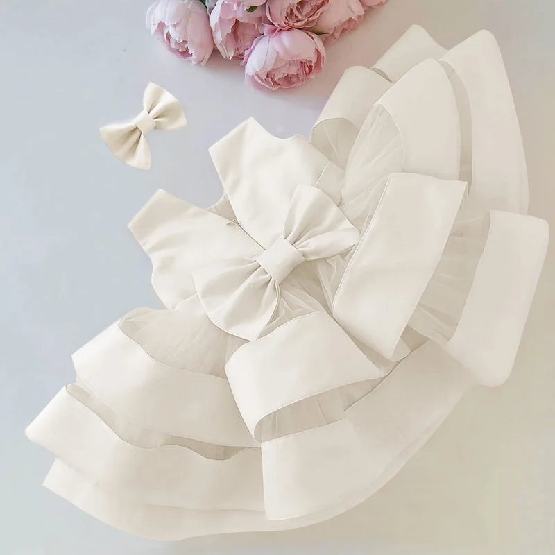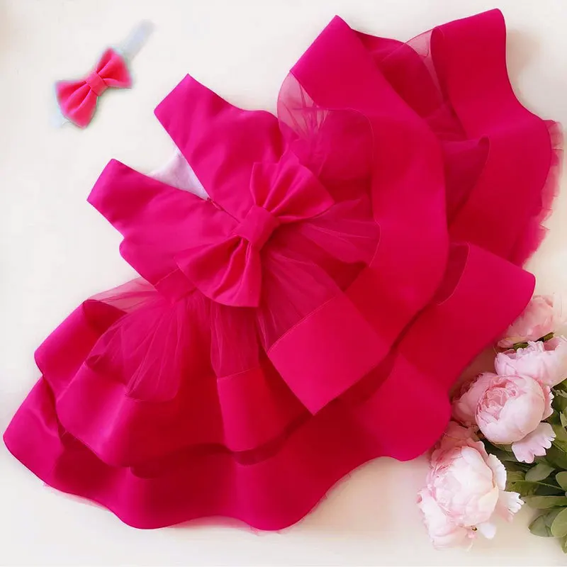 Детское платье с цветочным принтом, платье на 1-й день рождения для девочек, одежда для маленьких девочек, кружевное платье-пачка с бантом, платье принцессы для крещения, свадебное платье