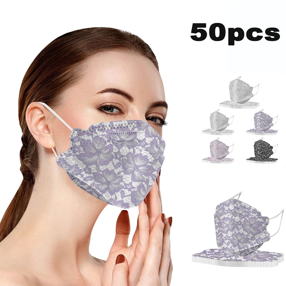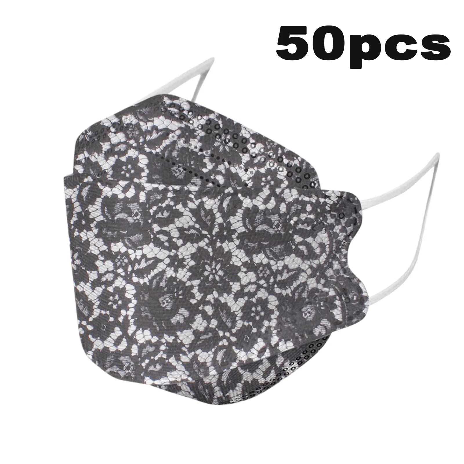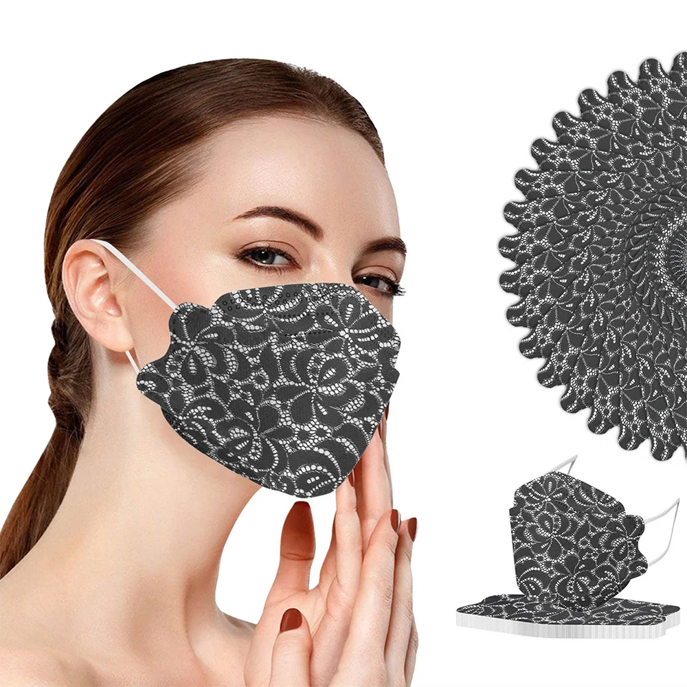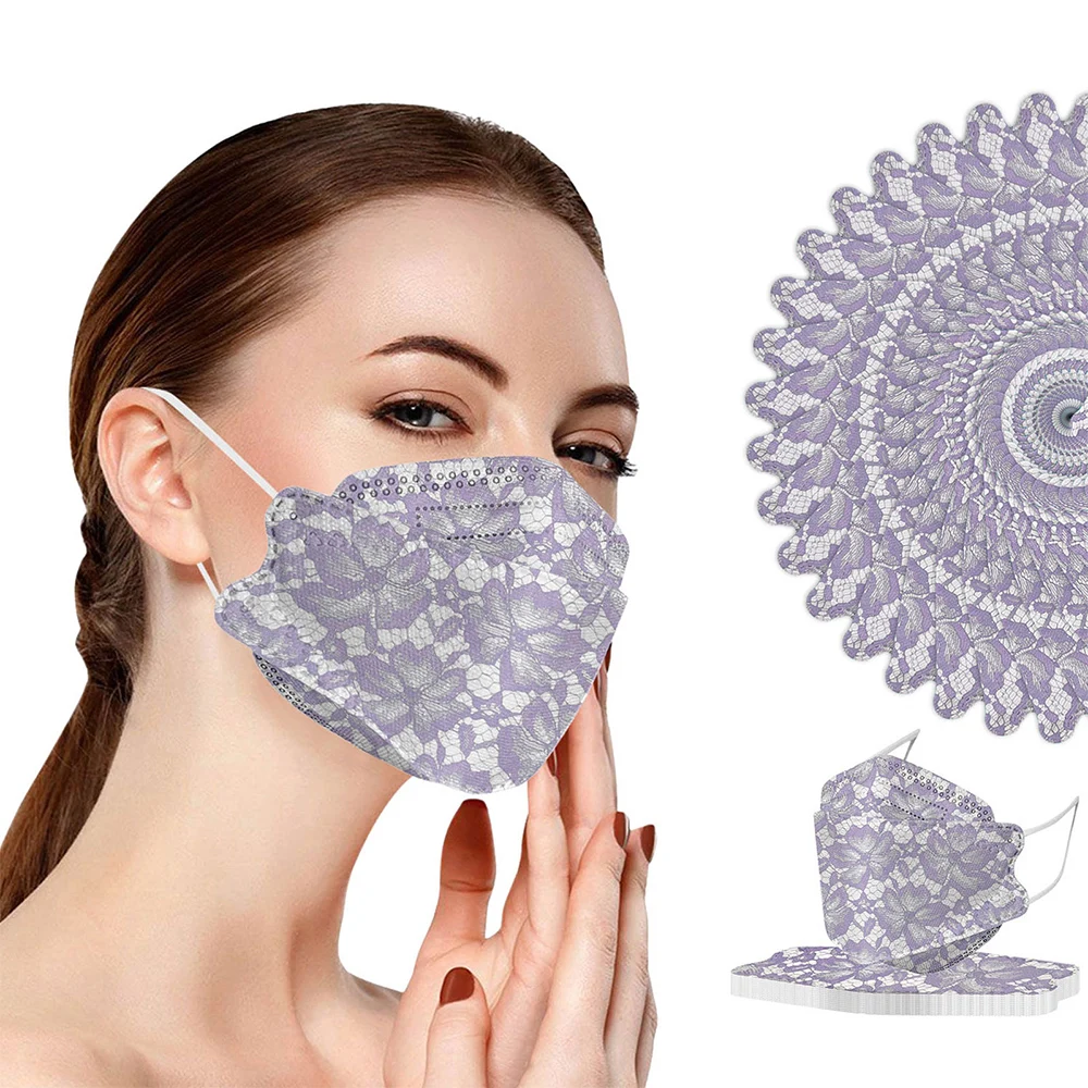Маска для лица, с кружевным принтом, одноразовая, 4 слоя, дышащая