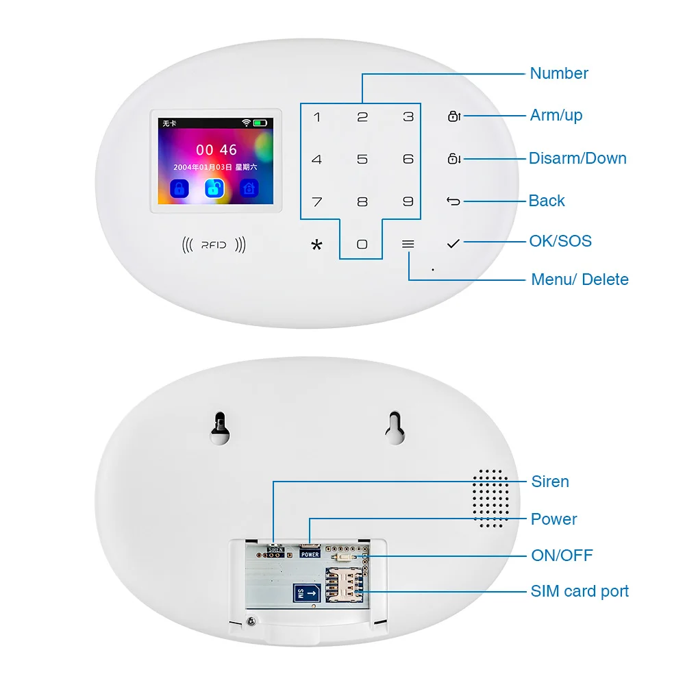 ЭтоОбновленная версия W20. это W204. 4G tuya app.GSM/WI-FI сигнализация с Стабильная и надежная производительность и применяется 2,4-дюймовый TFT цветной экран и сенсорная клавиатура Поддержка 4G WI-FI беспроводную сеть, сеть конфигурации легко поддерживает отзывы о состоянии хоста в режиме реального времени, чтобы приложение считывало rfid-карту для снятия, Можно узнать 20 карт Функция автоматического набора номера вызовет до 6 обозначенных телефонных номеров в чехол с защитой от взлома двери/окна Контакты обнаруживают любые мощные пассивные датчики движения обнаруживают Любые подозрительные движения или активность громкая, оповещение о потенциальном взломеМожет переключаться на испанский/английский/русский/немецкий/итальянский/японский/португальский язык