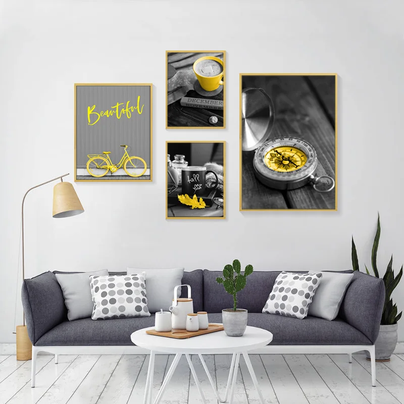 Скандинавская черно-белая фотография пейзаж Картина желтый шар автомобиль компас пейзаж домашний декор холст картина настенное искусство