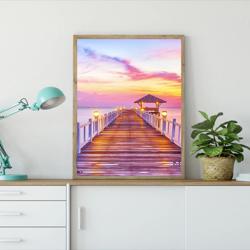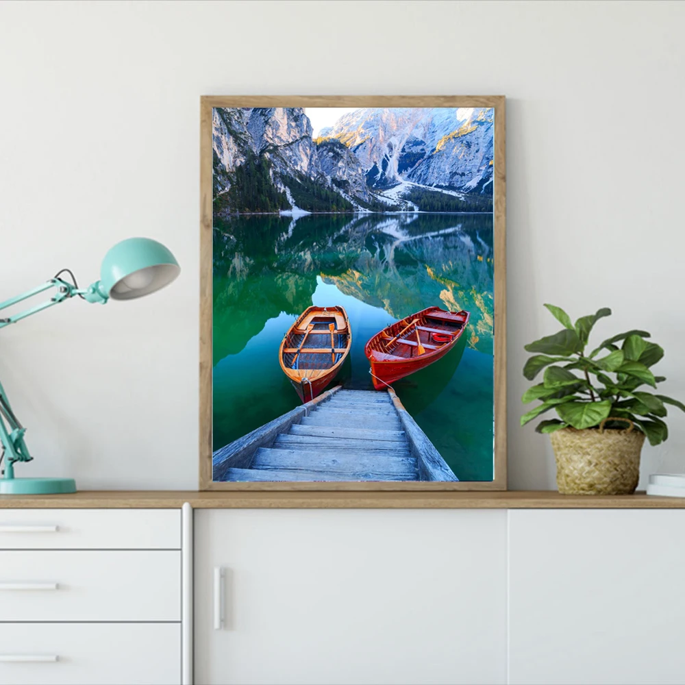 Pintura de diamante 5D, joyier de botaje, barco de paisaje, bordado...